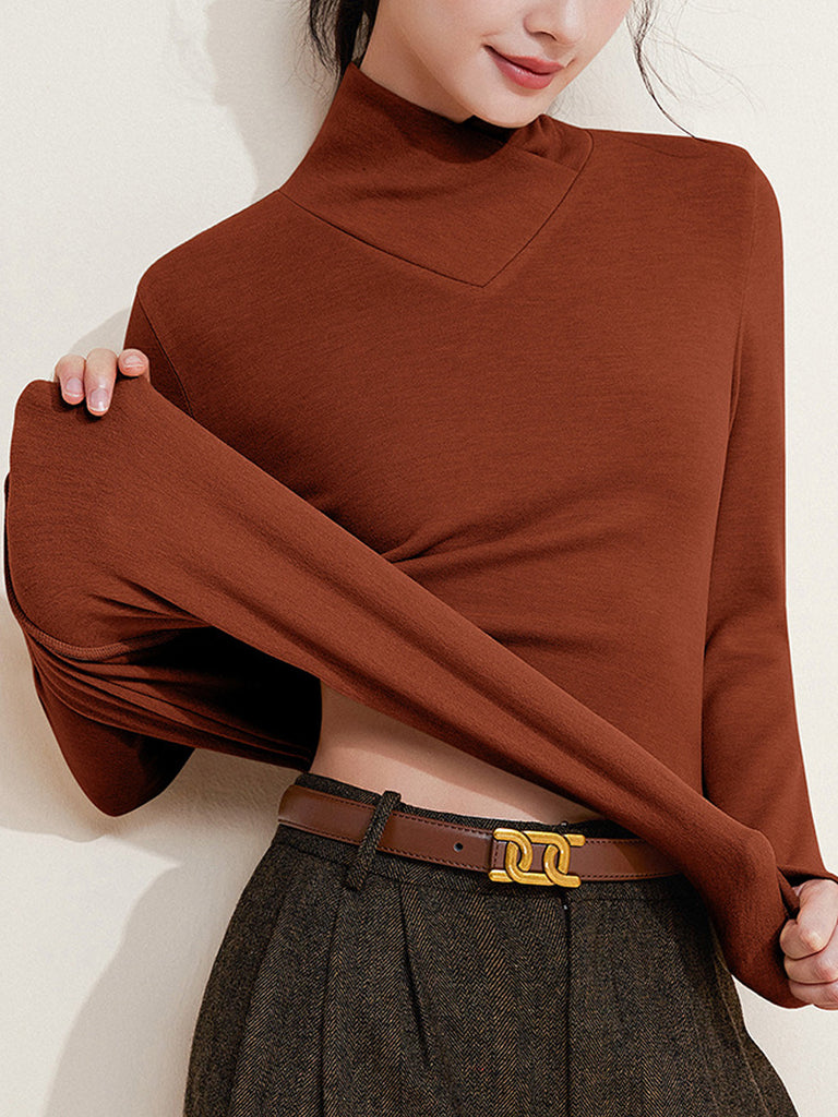 Chemise d'été en ramie à col rond et couleur pure pour femme