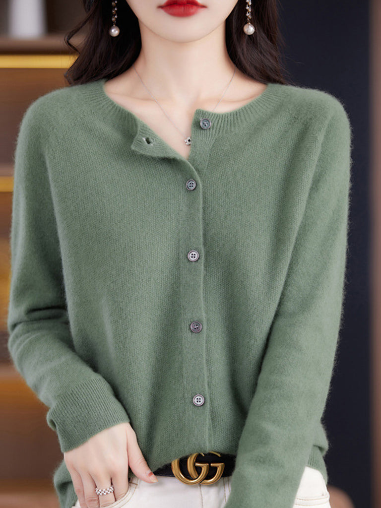 Pull en laine uni à col rond pour femme, style automne décontracté