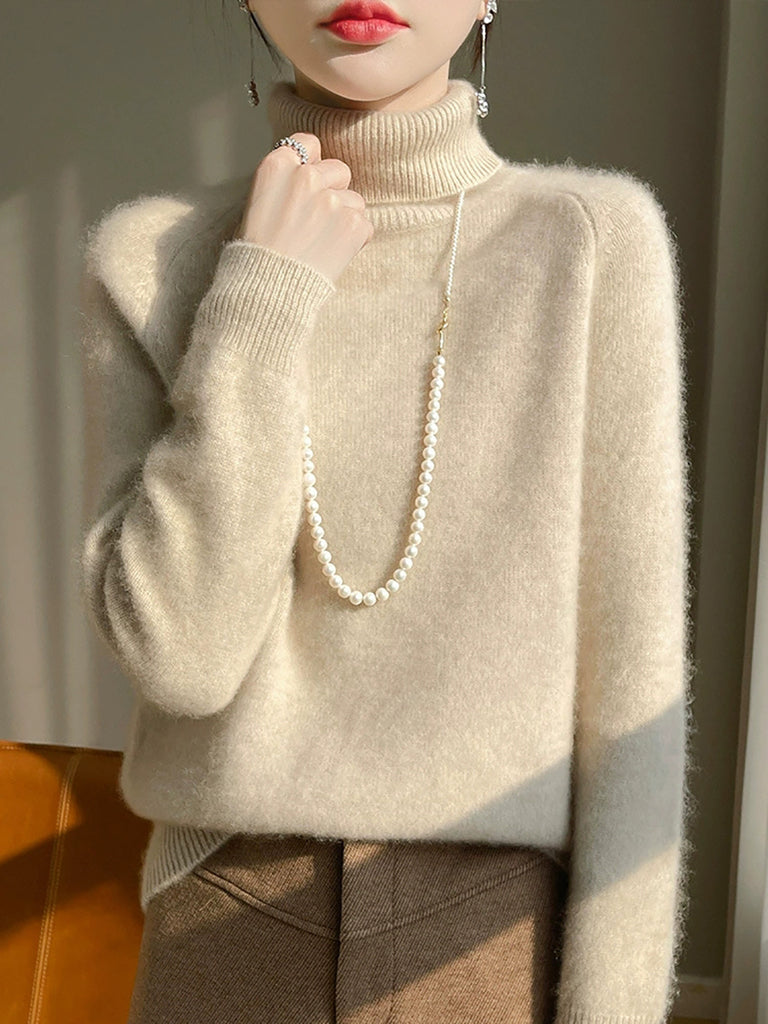 Pull à col roulé uni pour femme, 100 % laine, hiver