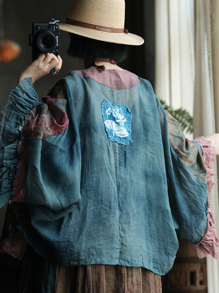Manteau chemise d'été en lin à fleurs rétro pour femme