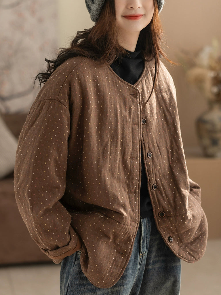 Manteau d'hiver rétro à pois pour femme, rembourré et col rond