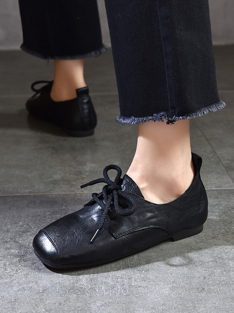 Chaussures plates souples vintage en cuir véritable pour femmes