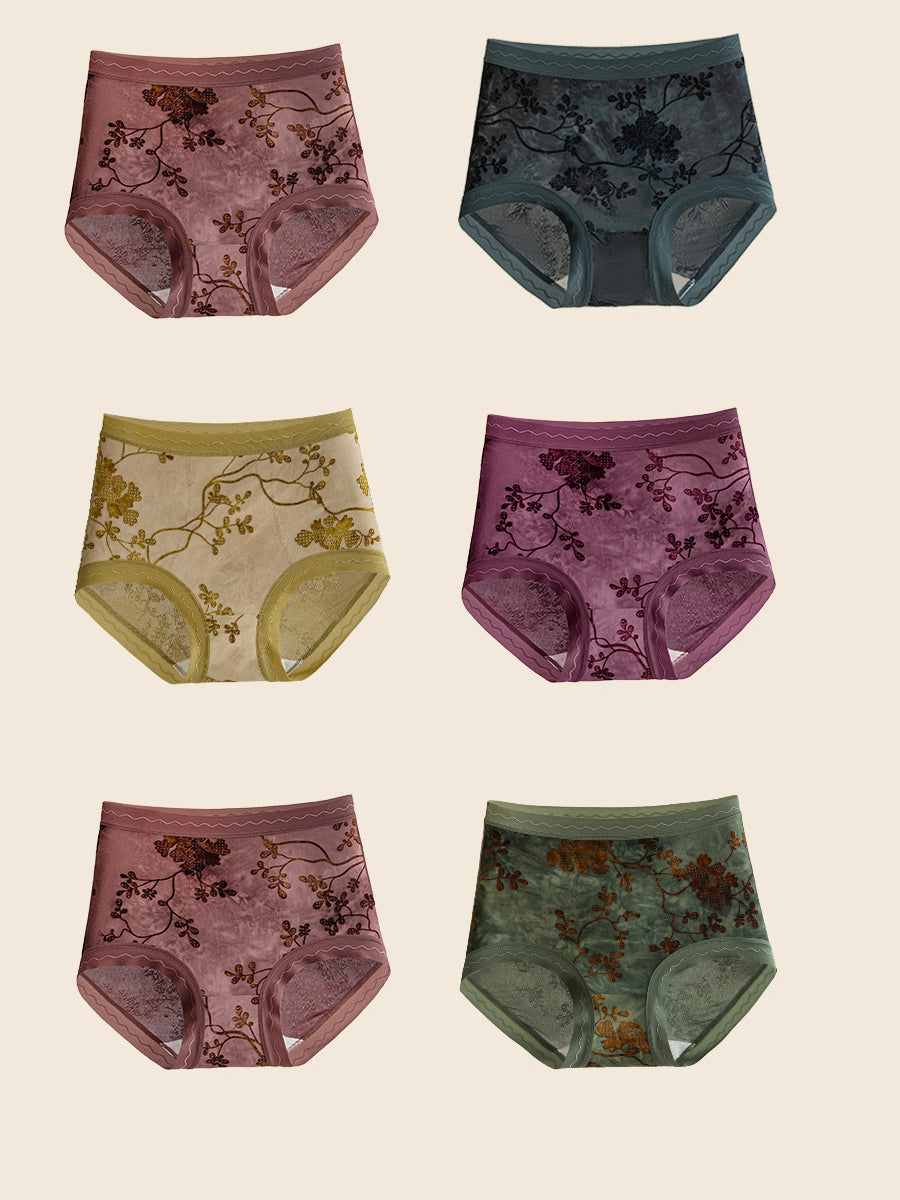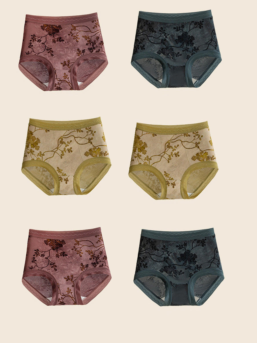 Lot de 6 sous-vêtements femme jacquard à fleurs taille haute