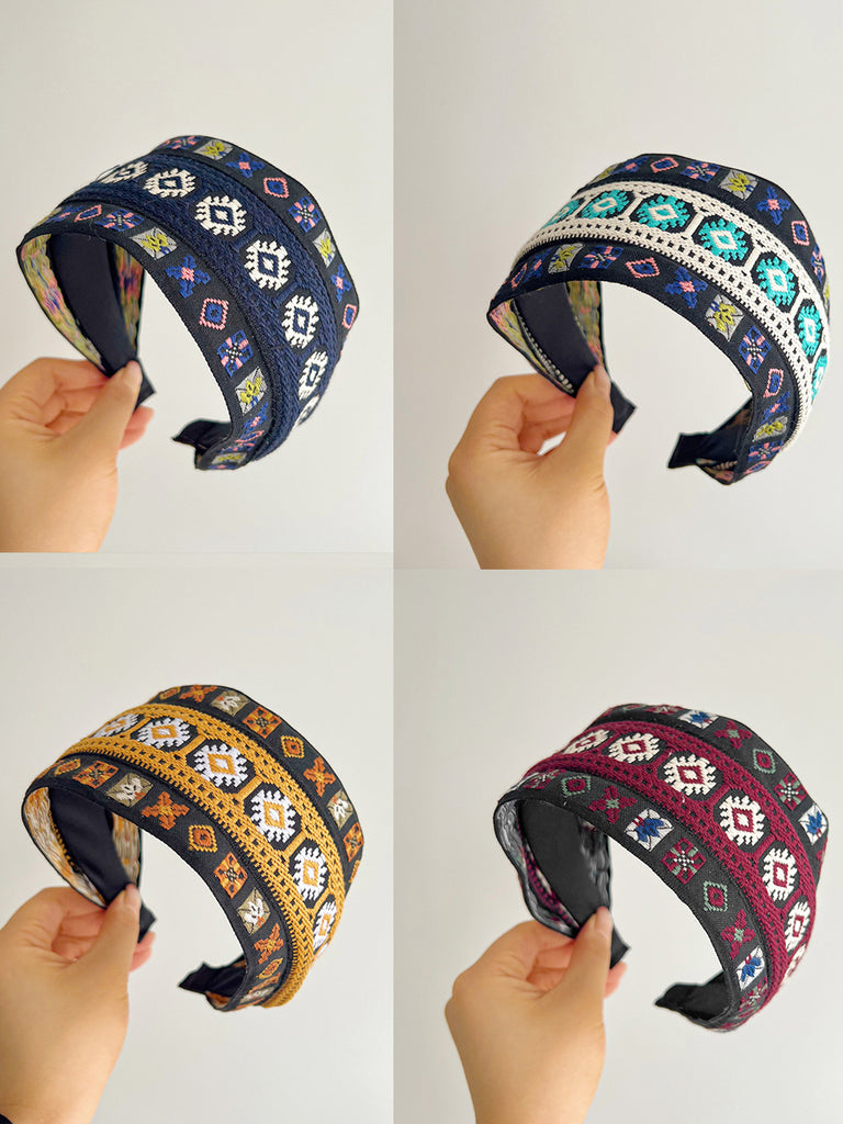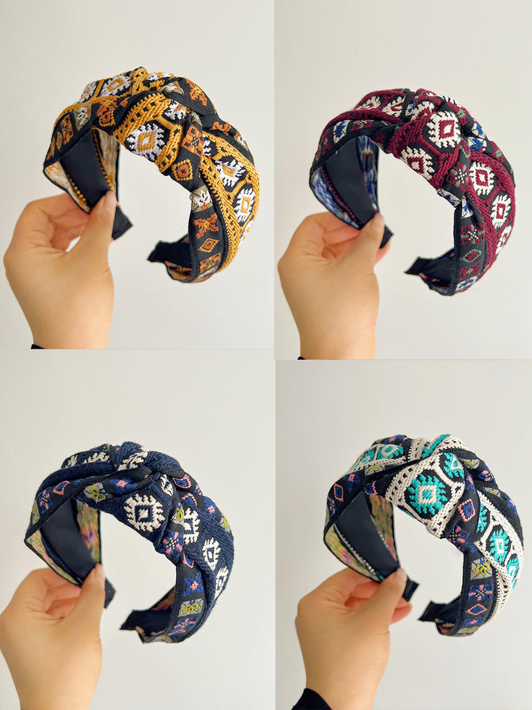 Lot de 4 bandeaux à cheveux larges tricotés à motif floral artistique pour l'hiver
