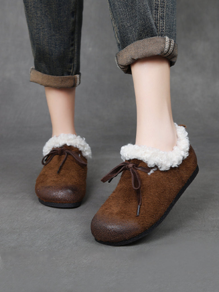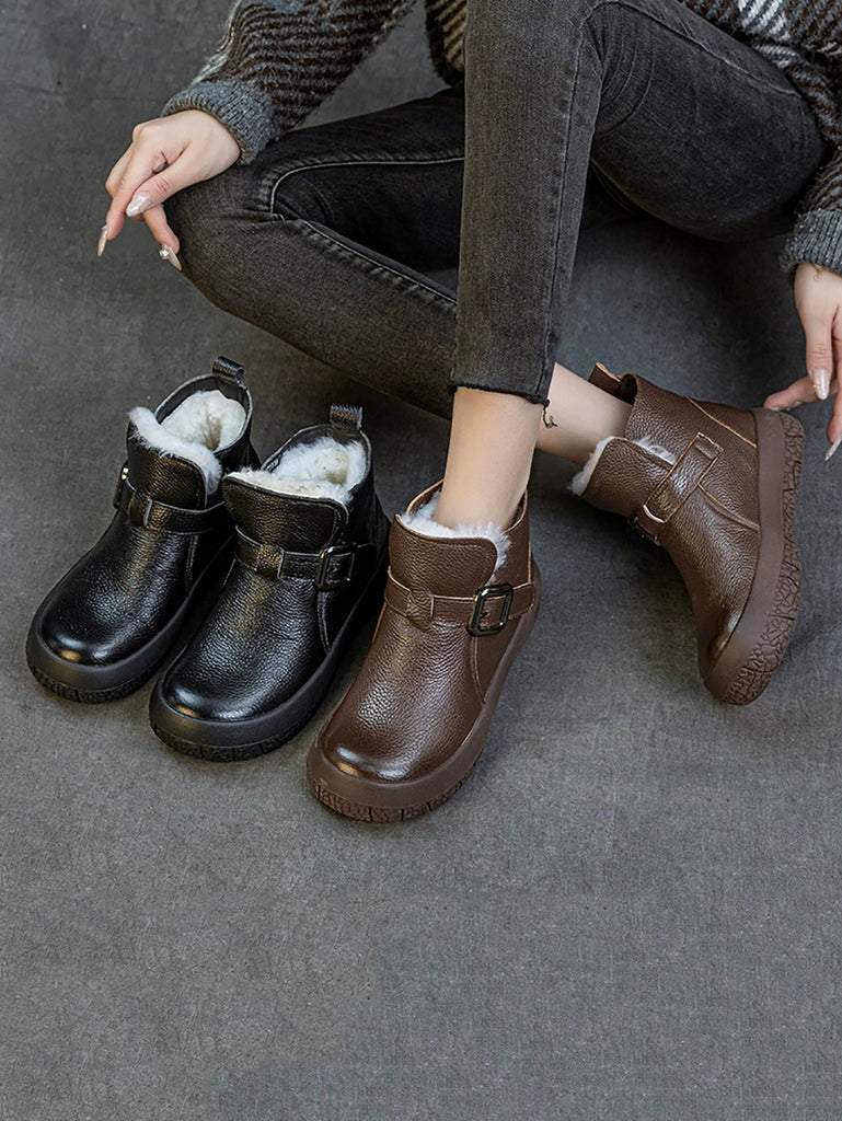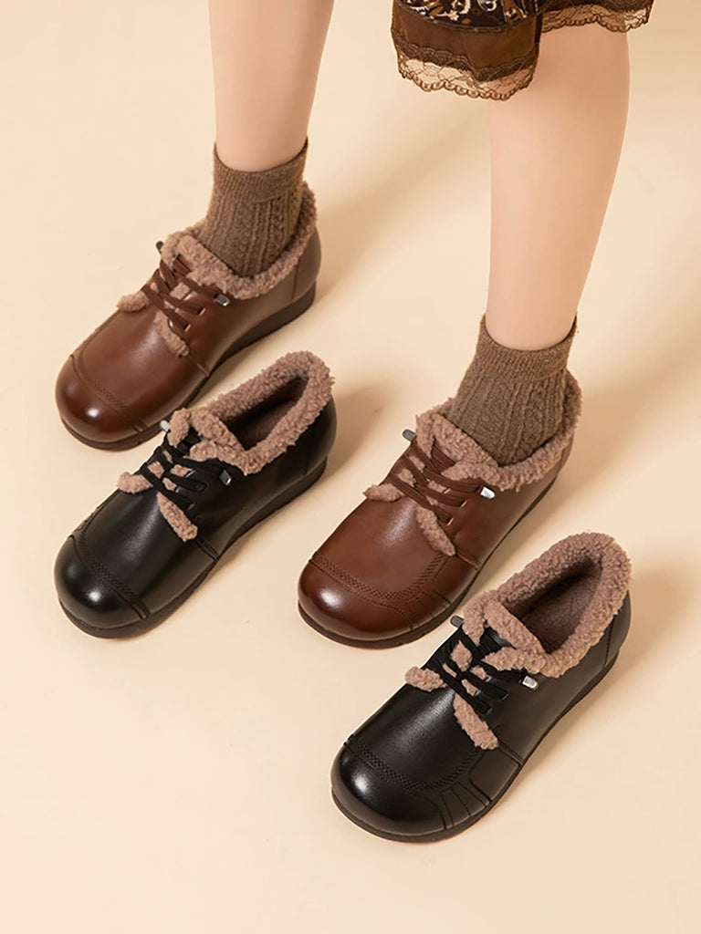 Chaussures vintage pour femmes en cuir véritable doublées de polaire