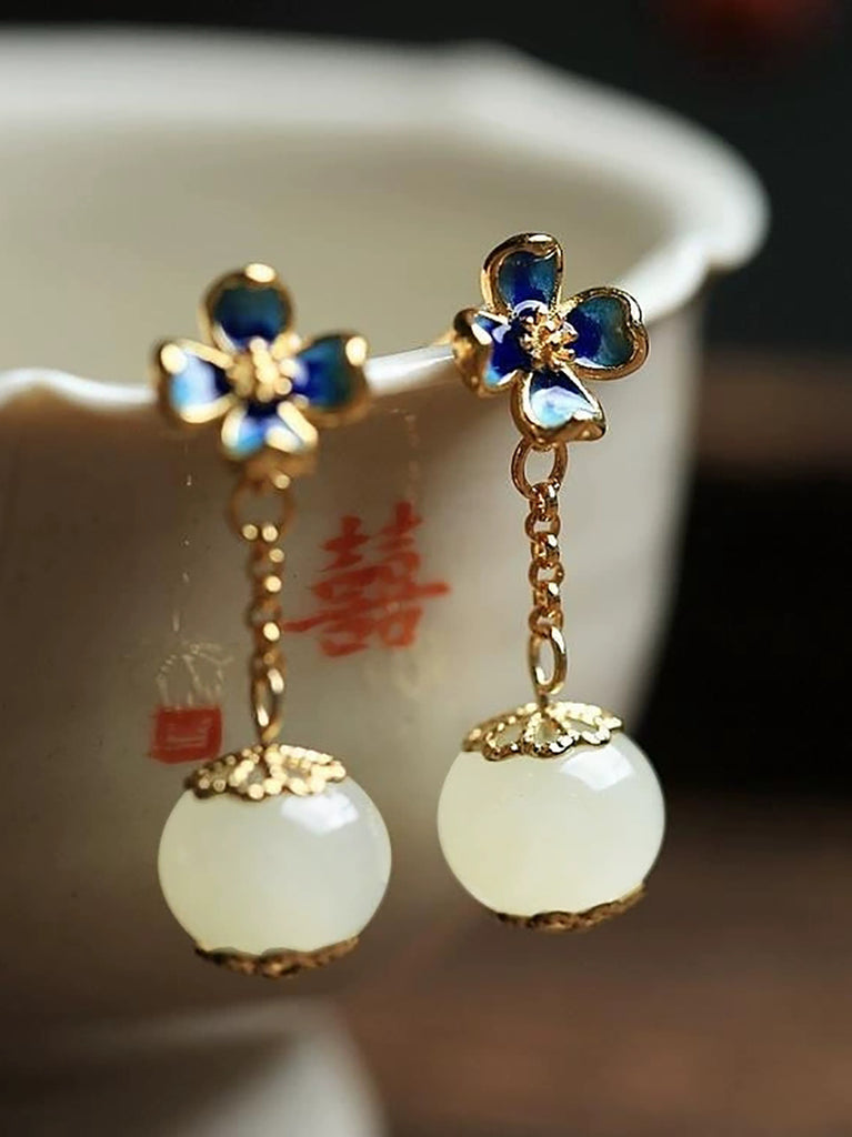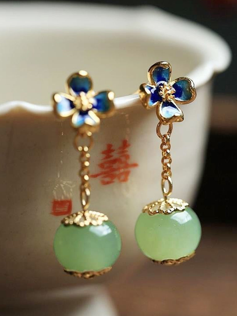 Boucles d'oreilles vintage pour femmes en alliage et jade cloisonné