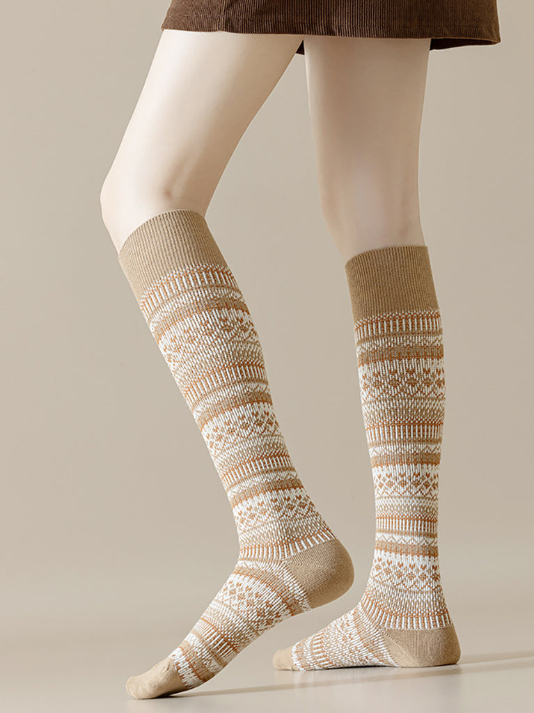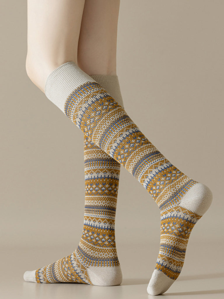 Lot de 5 paires de chaussettes longues d'hiver rayées en coton pour femmes
