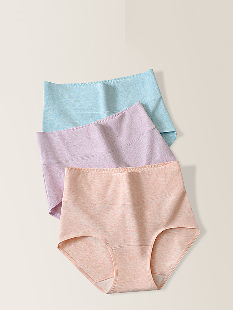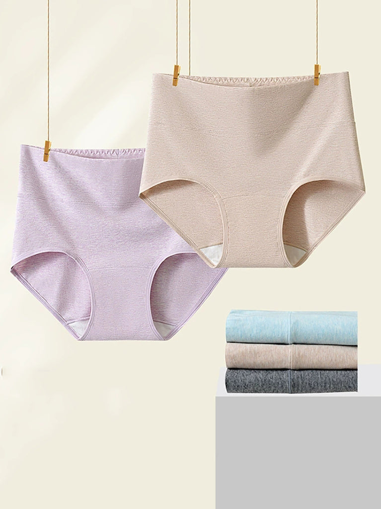 Lot de 5 sous-vêtements en coton taille haute, couleur unie, pour femme