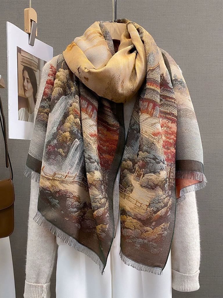Châle/écharpe d'hiver à imprimé artistique pour femme
