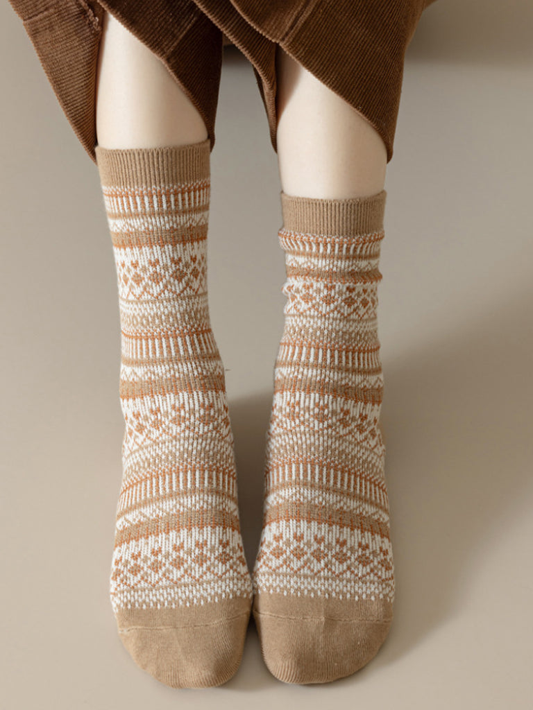 Lot de 5 paires de chaussettes d'hiver vintage à rayures en coton pour femmes