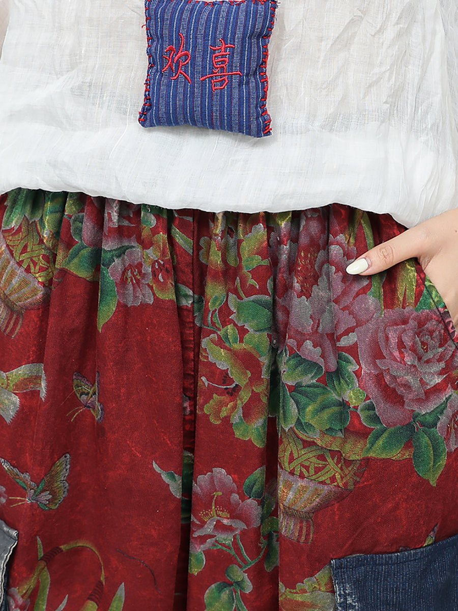 Pantalon sarouel d'été rétro à fleurs et patchwork pour femme