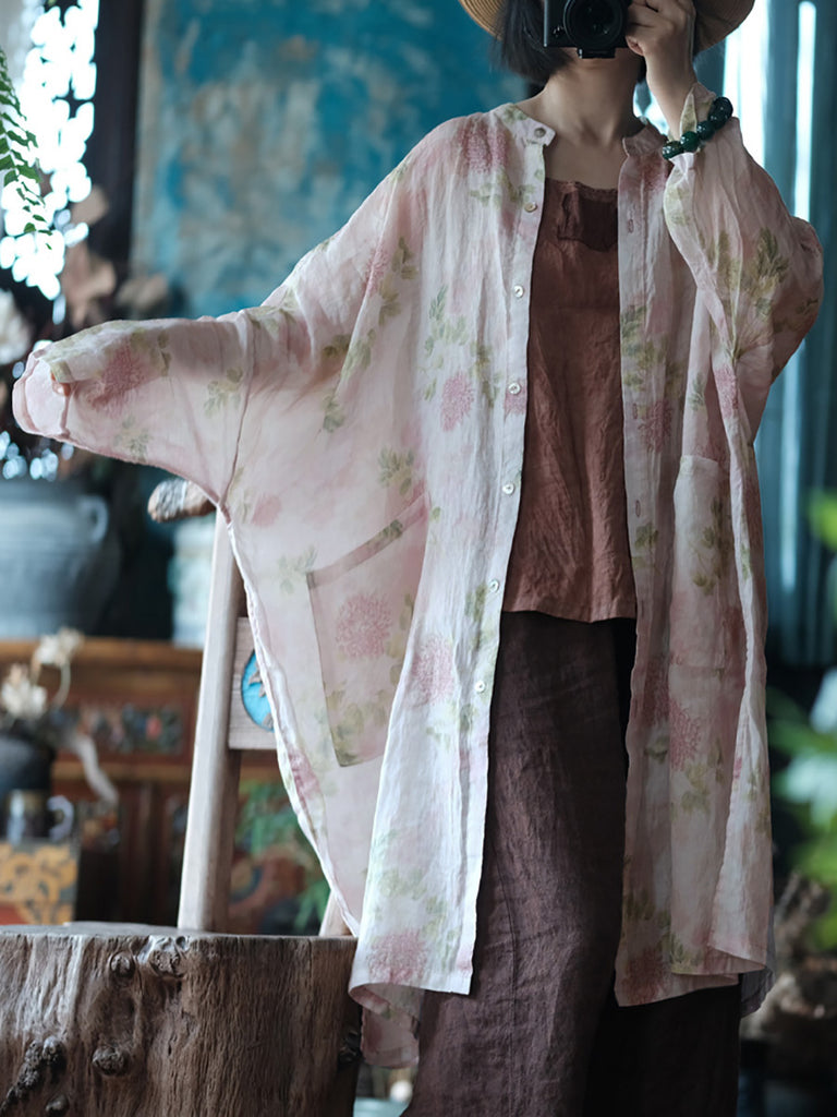 Chemise longue fine en ramie à fleurs vintage pour femme