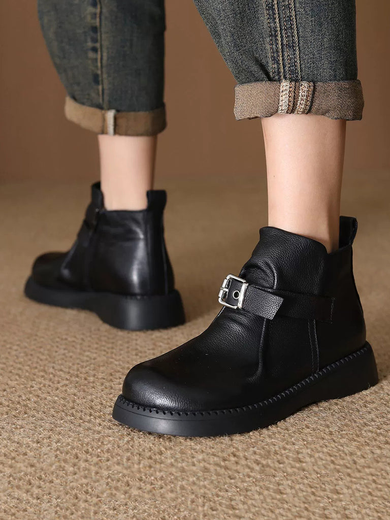 Bottines à talons mi-hauts vintage en cuir véritable pour femme