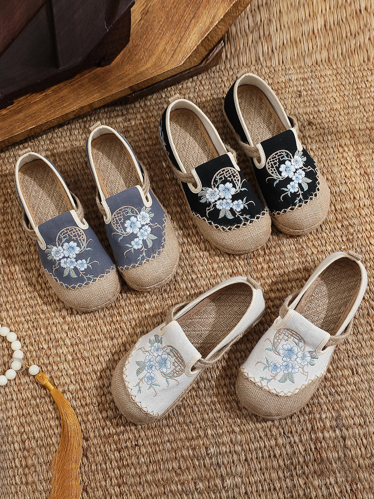 Chaussures d'été vintage en lin et tissu fleuri pour femmes