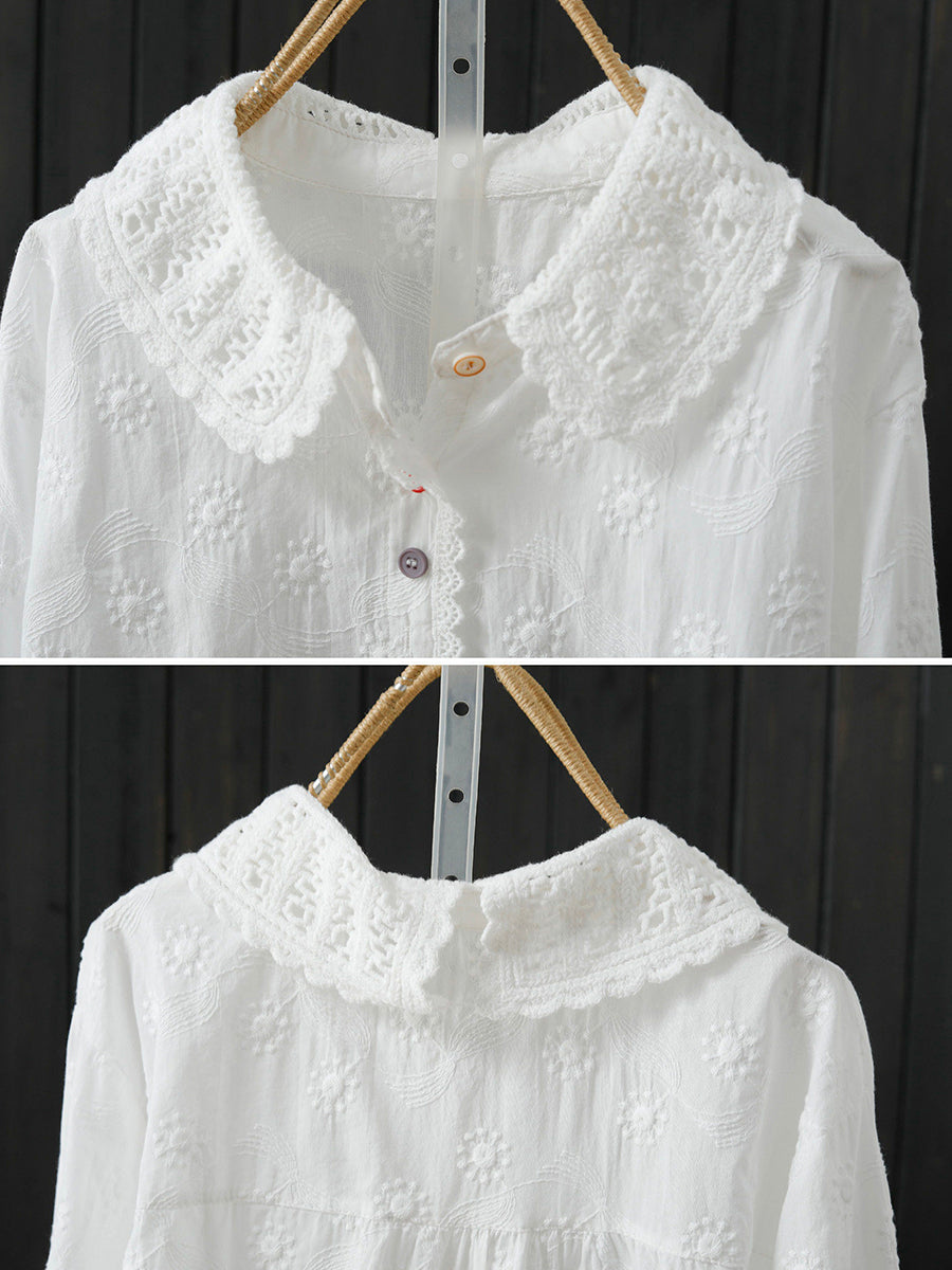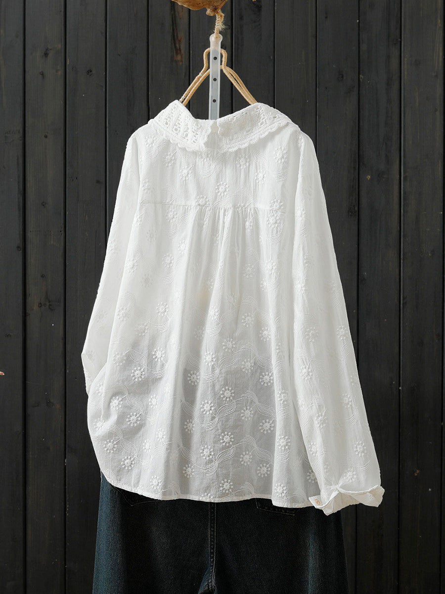 Chemise printanière pour femme, broderie artistique, 100 % coton