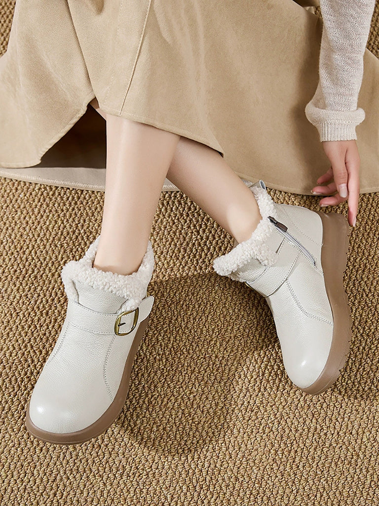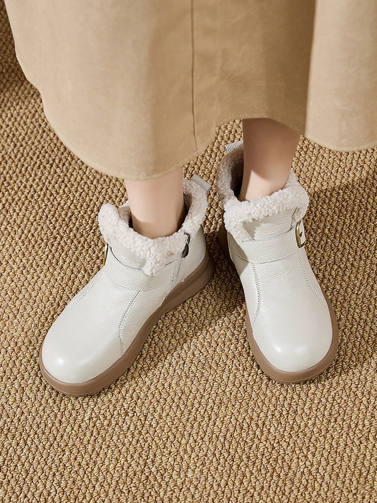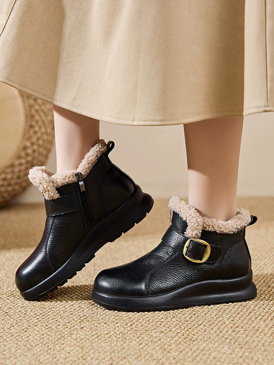 Bottines d'hiver pour femmes en cuir véritable doublées polaire