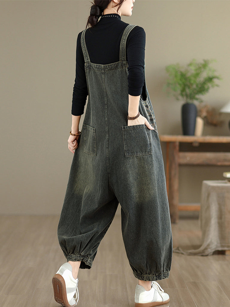Combinaisons en denim décontractées de couleur pure pour femmes, automne