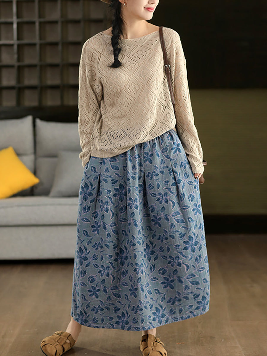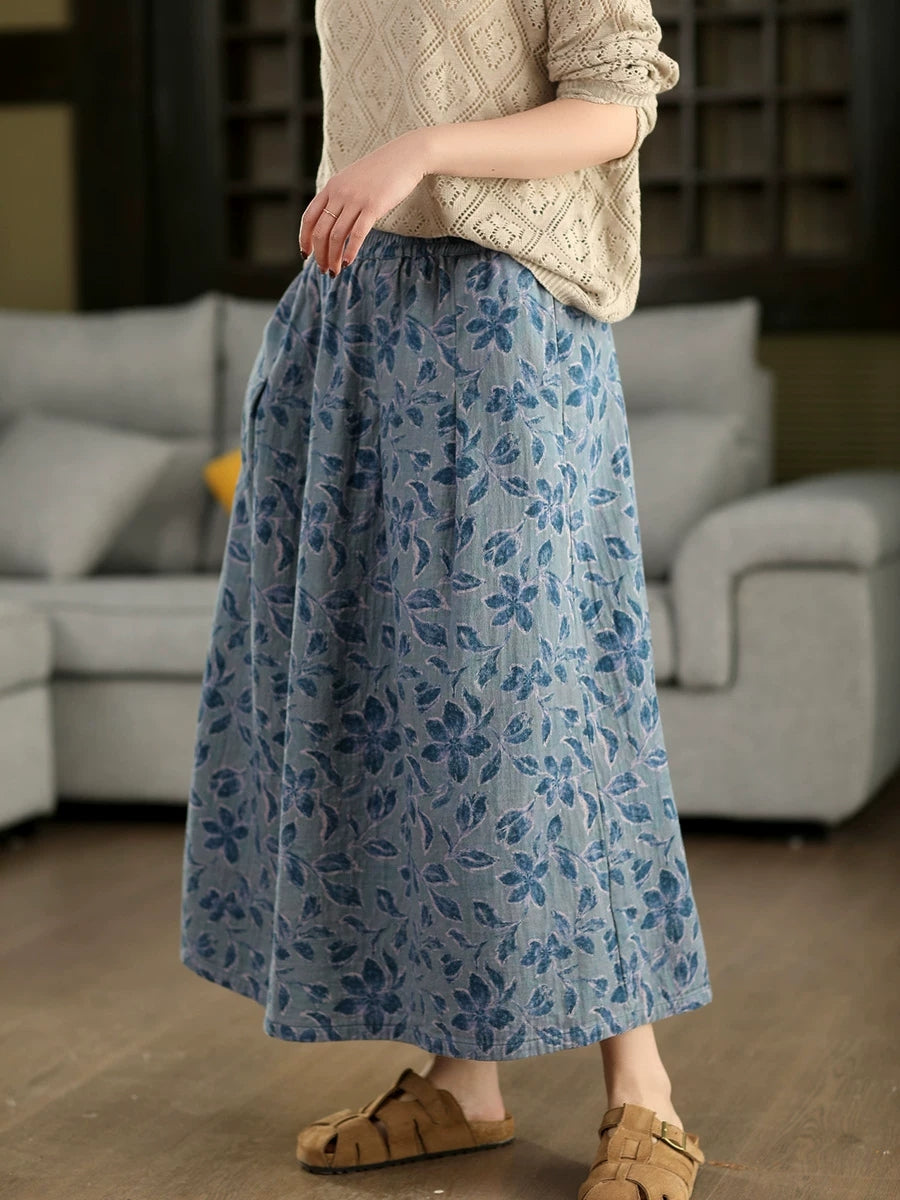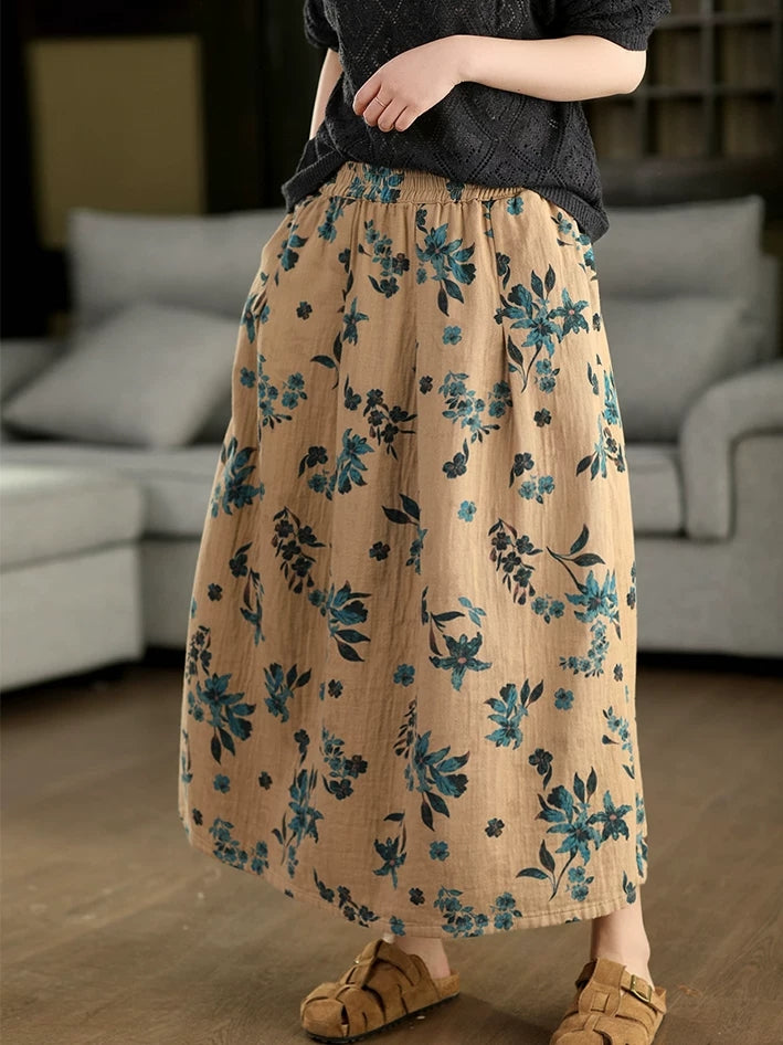 Jupe d'été fleurie artistique pour femme, 100 % coton