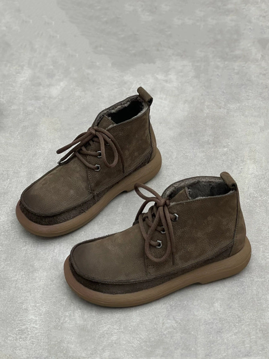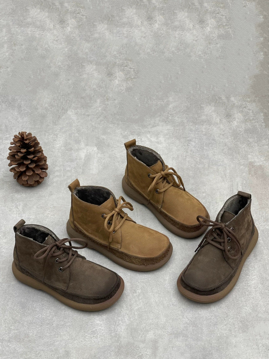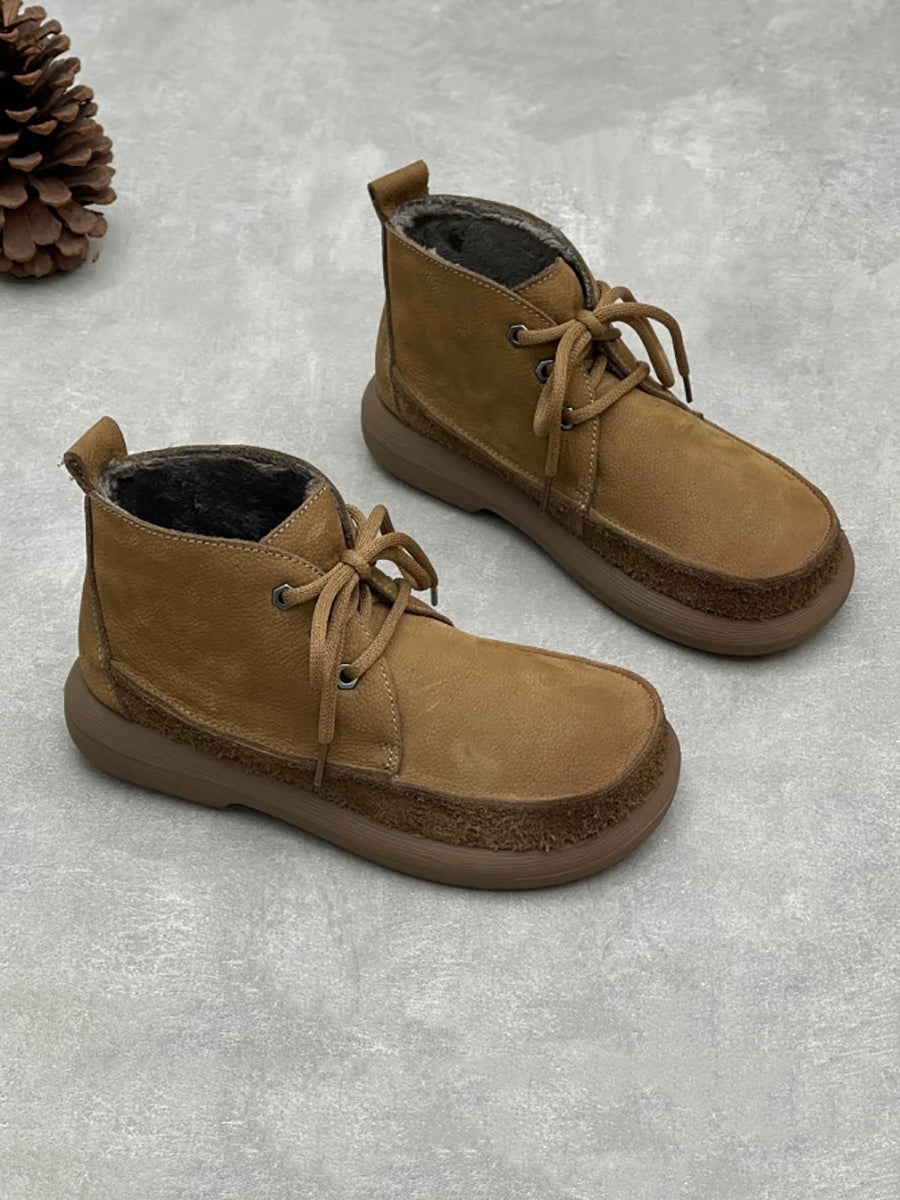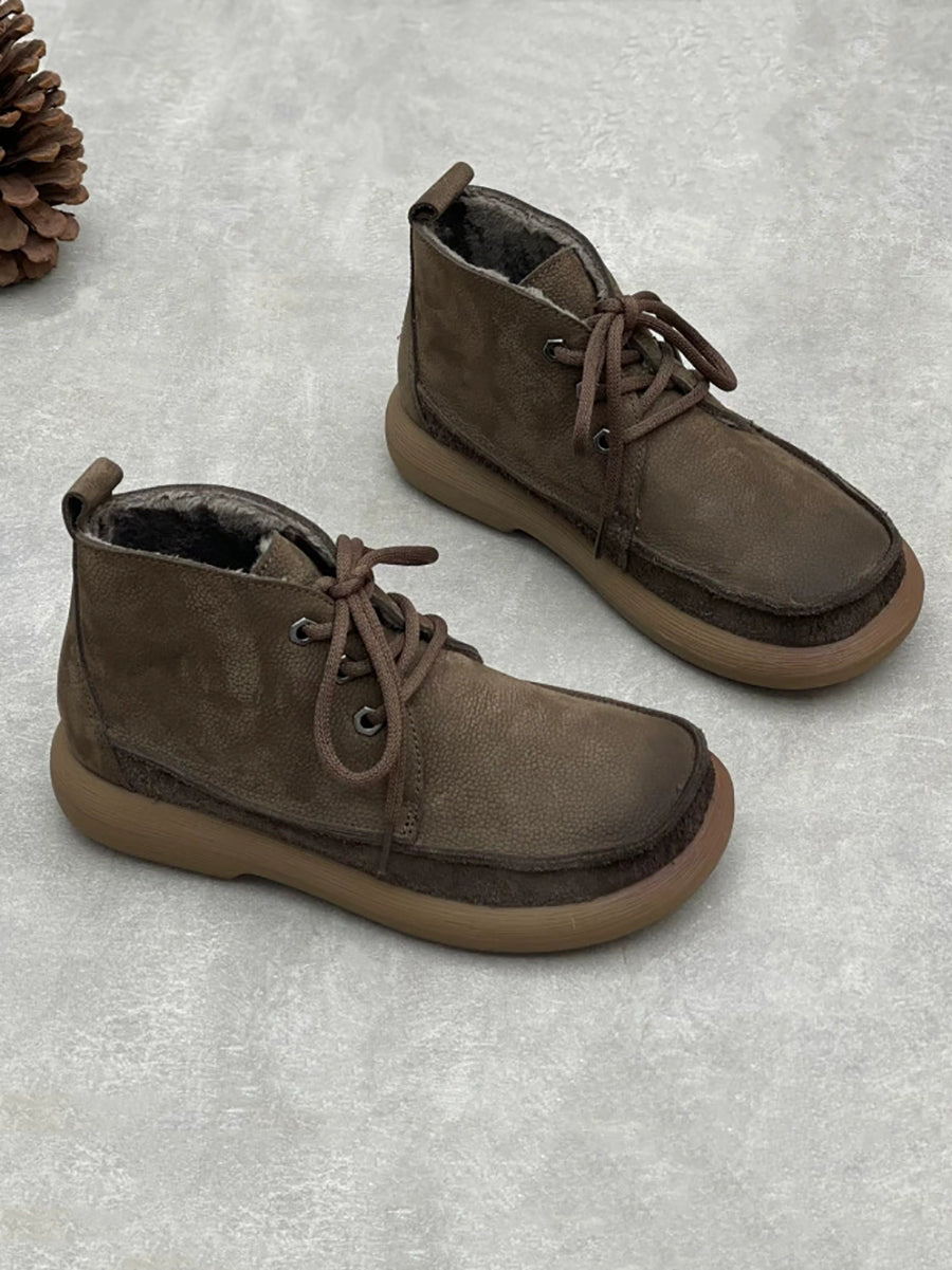 Bottines d'hiver vintage pour femmes en cuir véritable