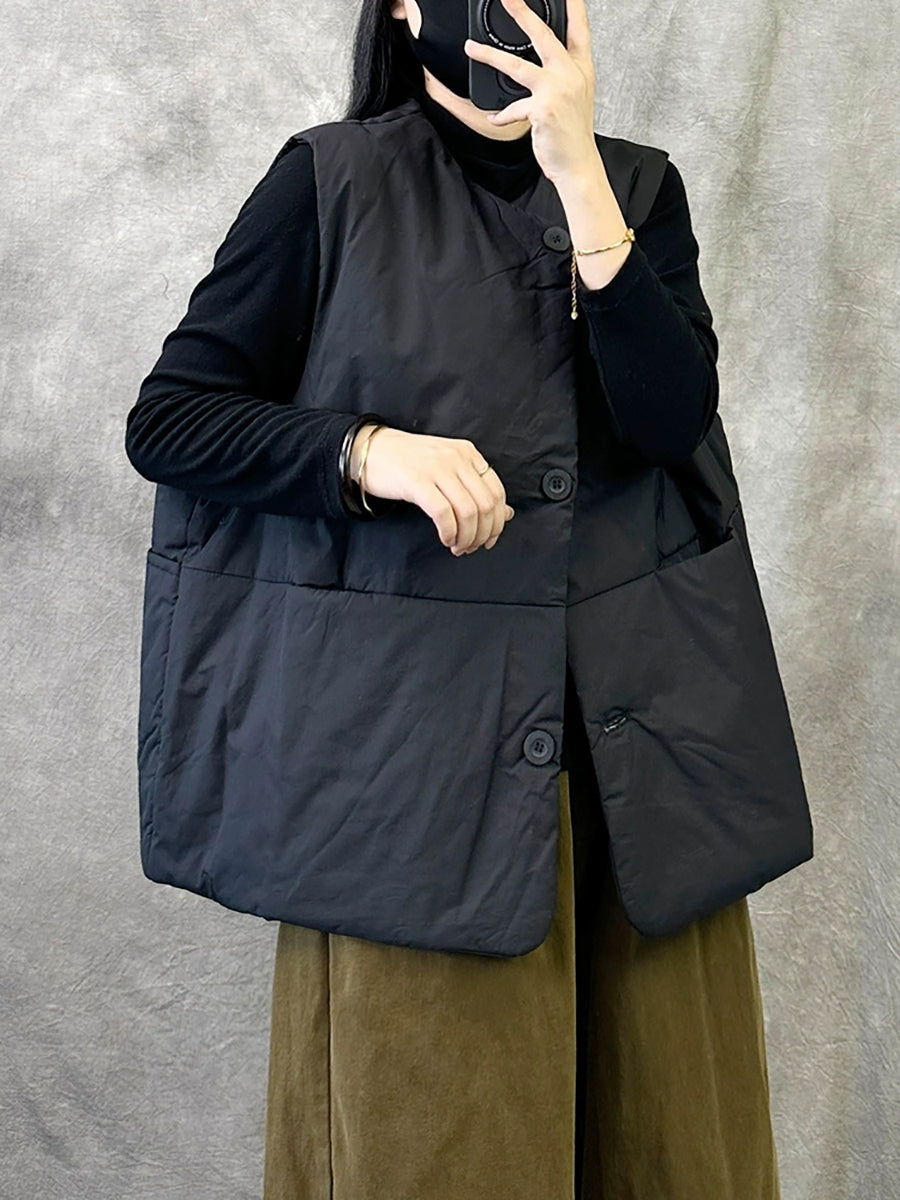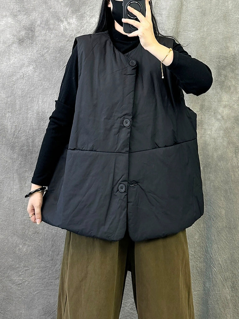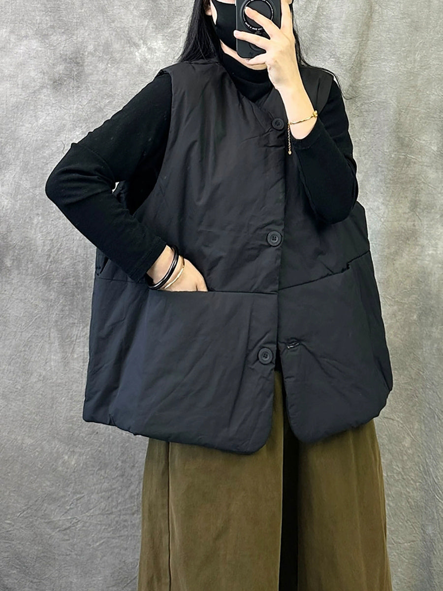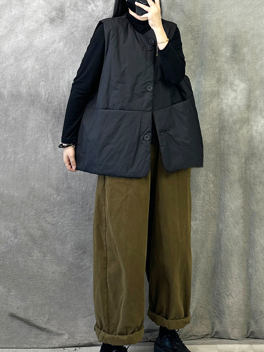 Confectionné en coton de qualité, ce gilet matelassé polyvalent offre une chaleur essentielle pour la mi-saison. Son design minimaliste uni et sa coupe décontractée à col rond en font une pièce facile à superposer qui s'accorde avec toutes vos tenues casual. Idéal pour l'automne et l'hiver, il allie isolation pratique et élégance discrète.