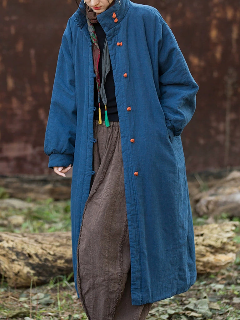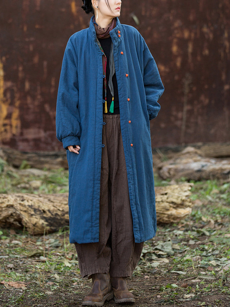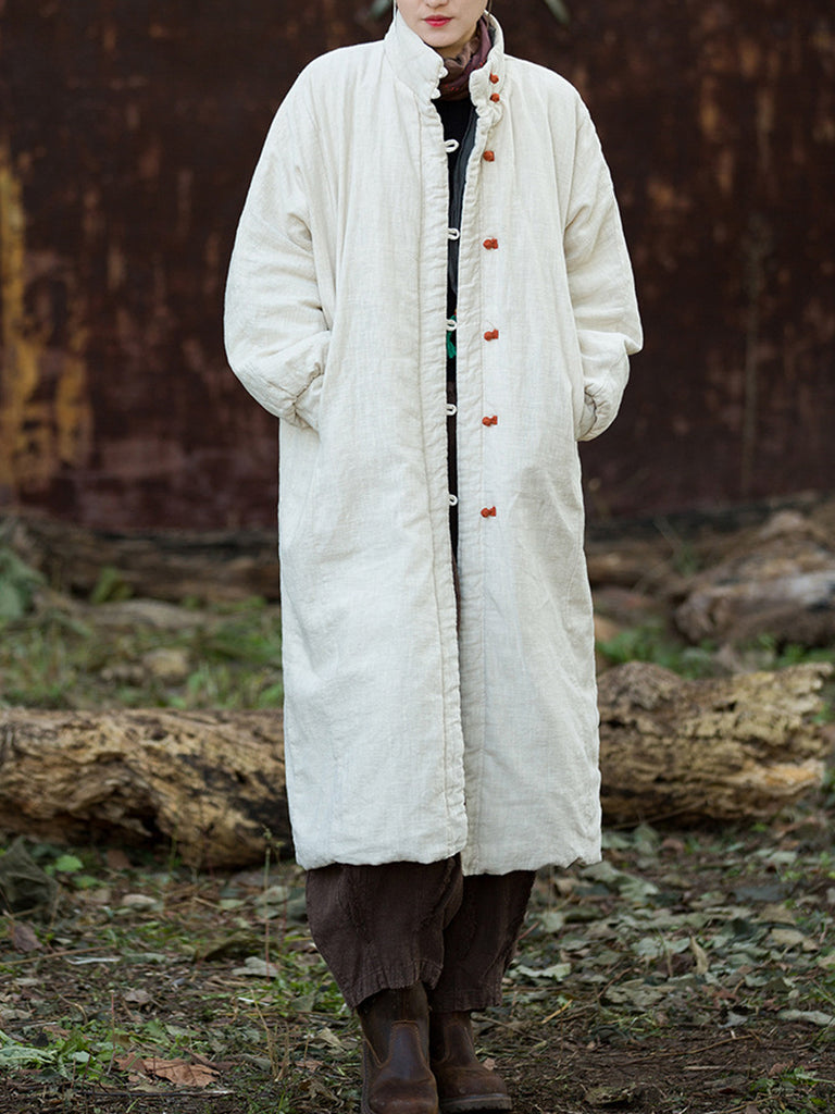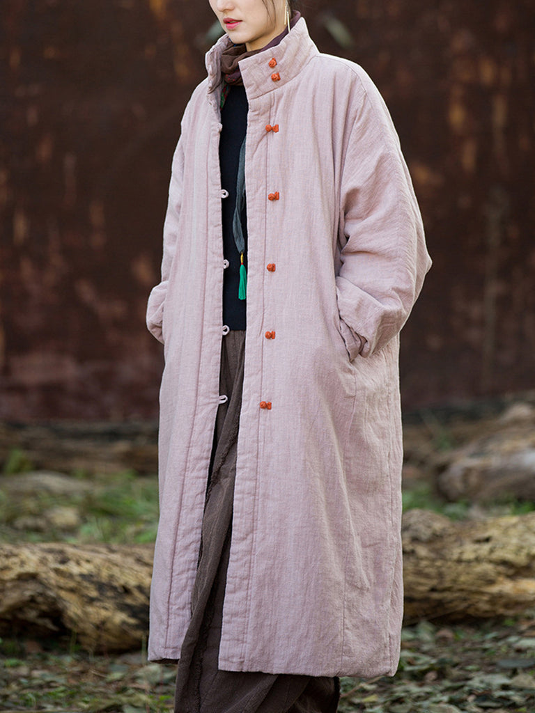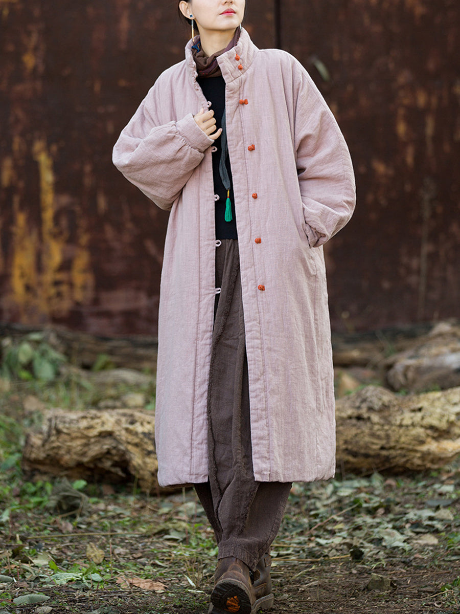 Manteau d'hiver matelassé à col montant et couleur unie pour femme