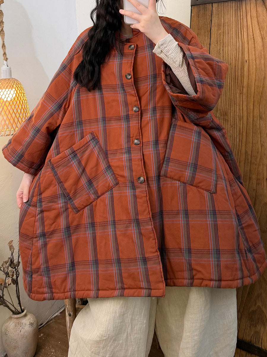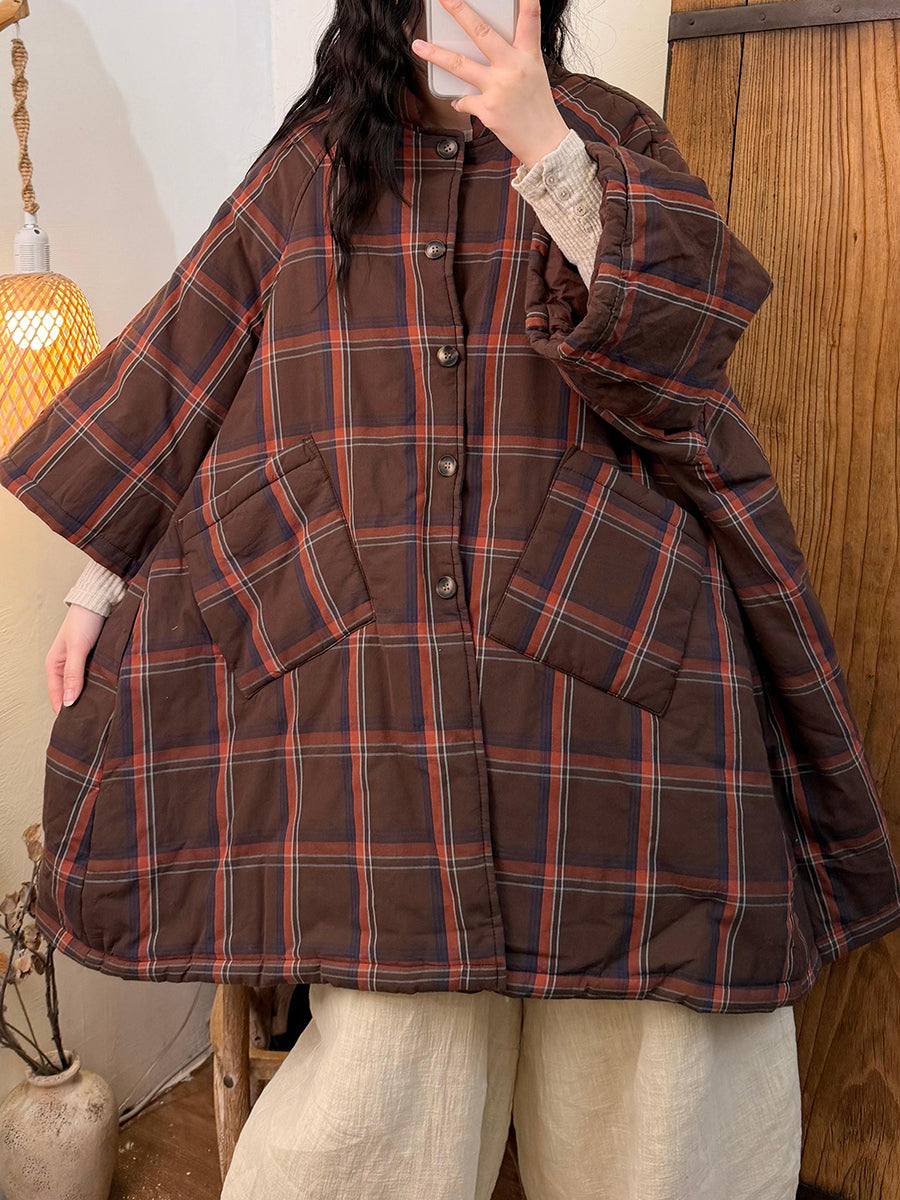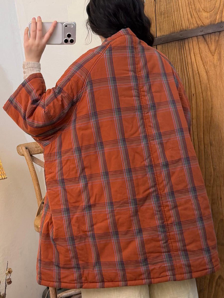 Manteau d'hiver rétro à carreaux pour femme, col montant et matelassé