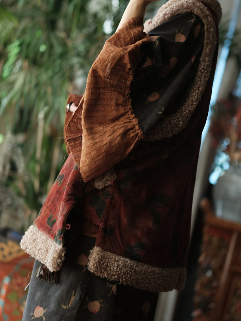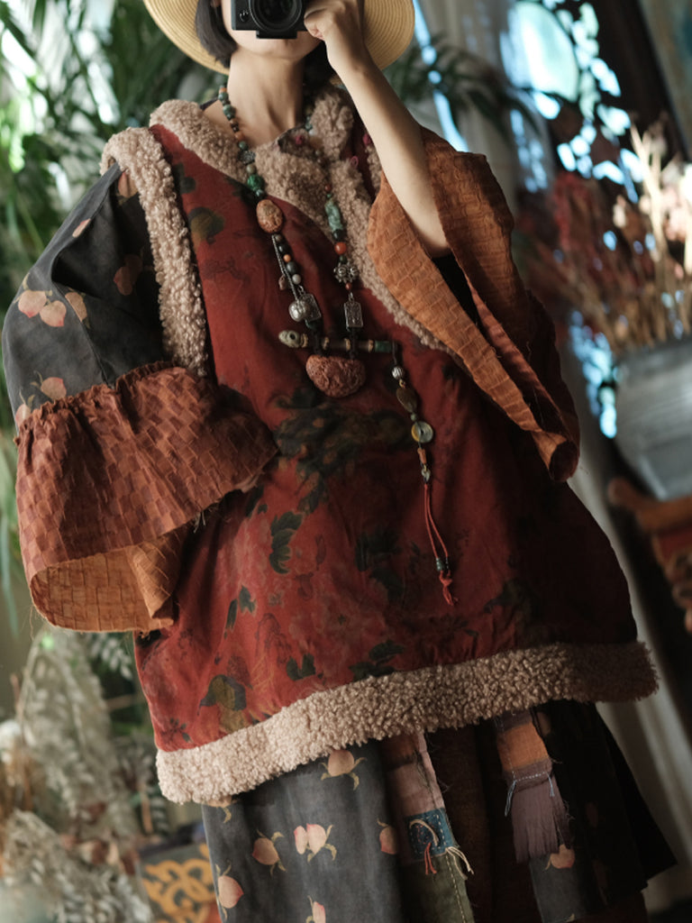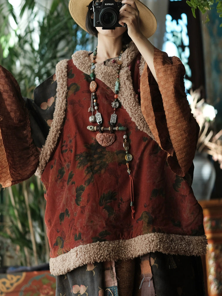 Gilet matelassé en polaire à fleurs vintage pour femme