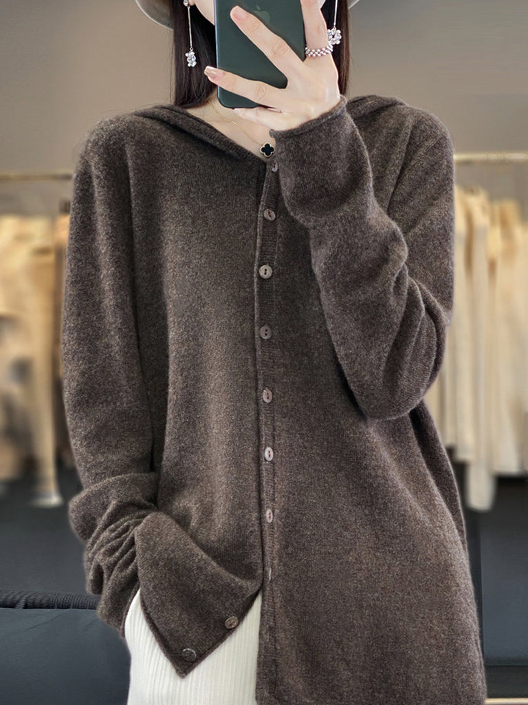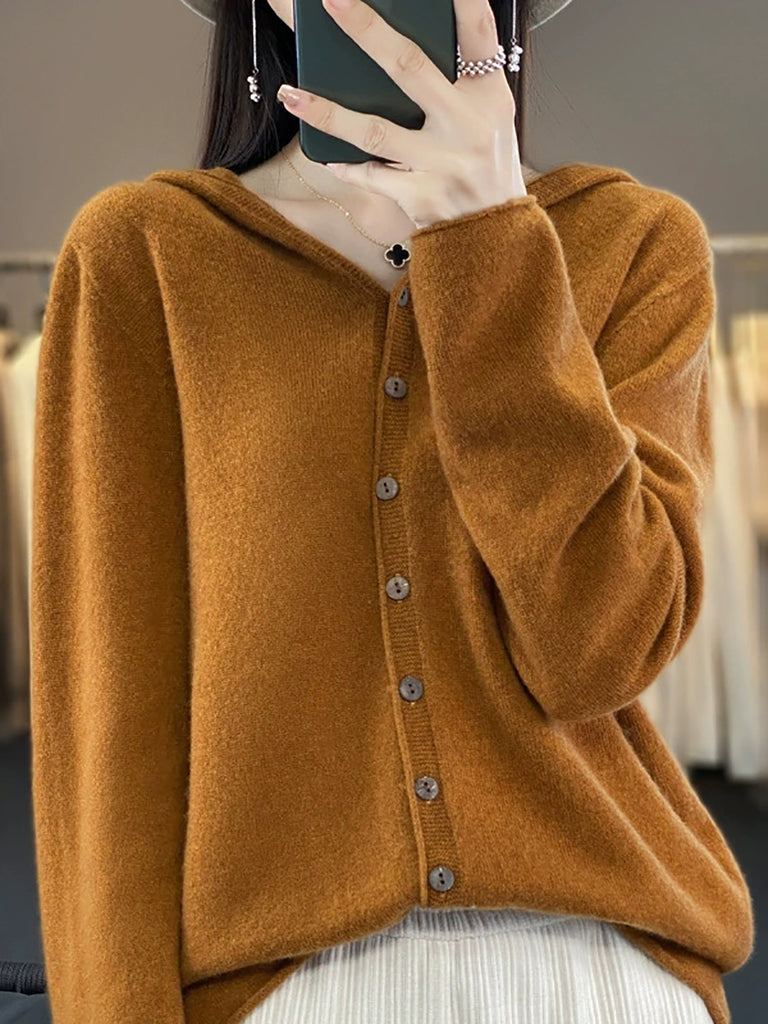 Cardigan à capuche en coton pour femme, couleur unie, automne