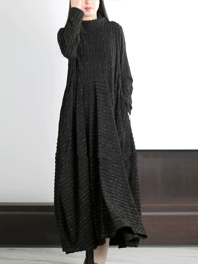 Robe longue à rayures et col rond pour femme, style arty, automne