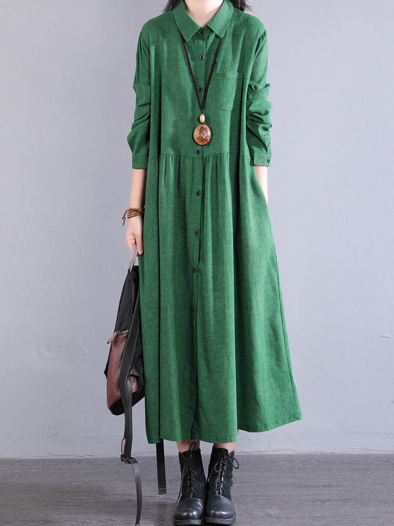 Robe d'automne à col rabattu pour femme, 100 % coton, couleur unie