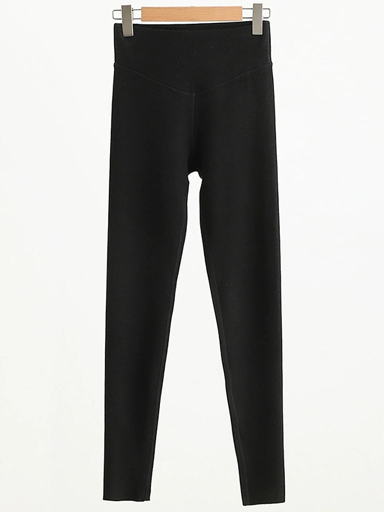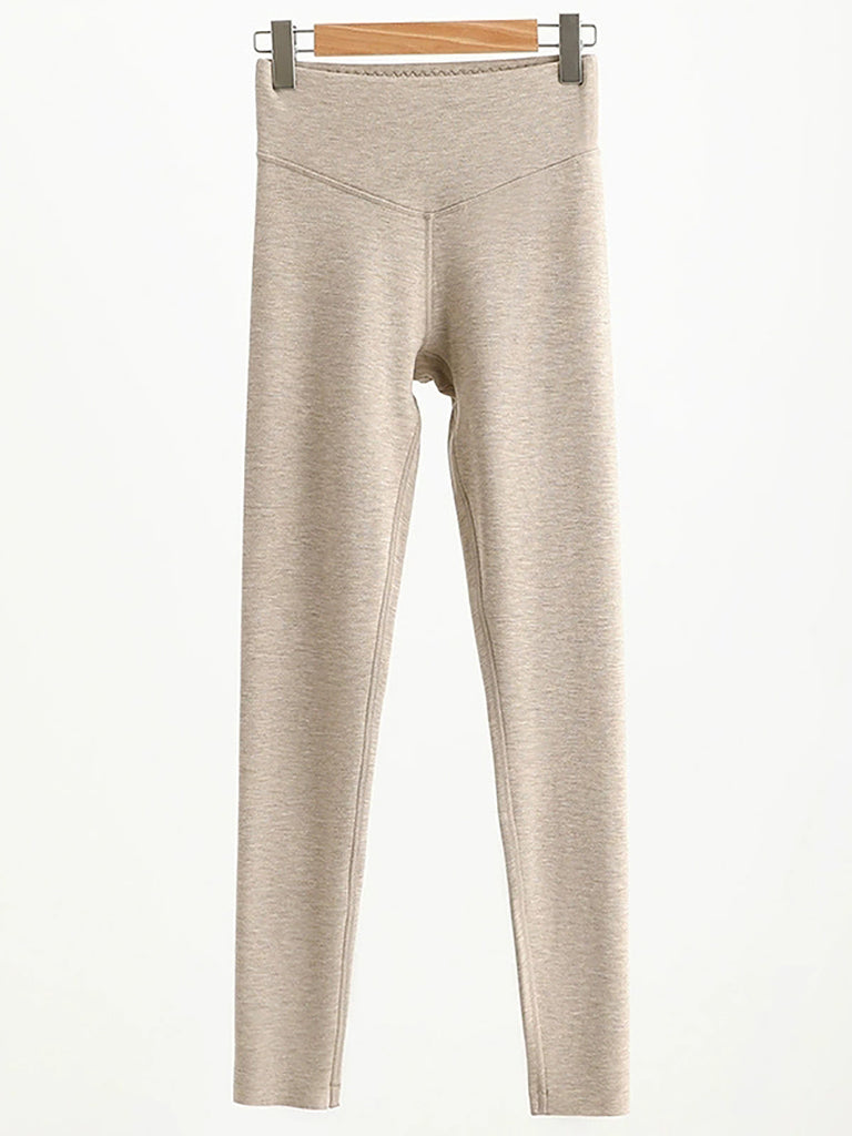 Leggings taille haute pour femme, couleur unie, chauds, automne