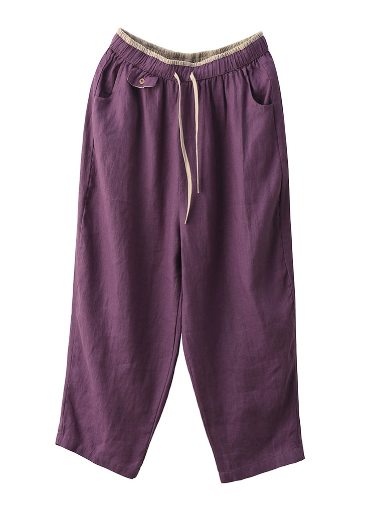 Short d'été à jambes larges en ramie à fleurs artistiques pour femme