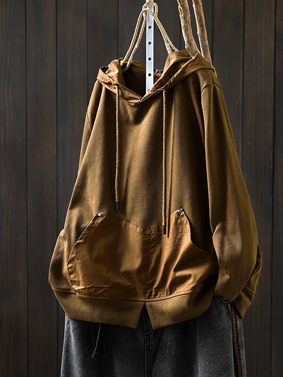 Sweat à capuche rétro automne couleur pure 100 % coton pour femme