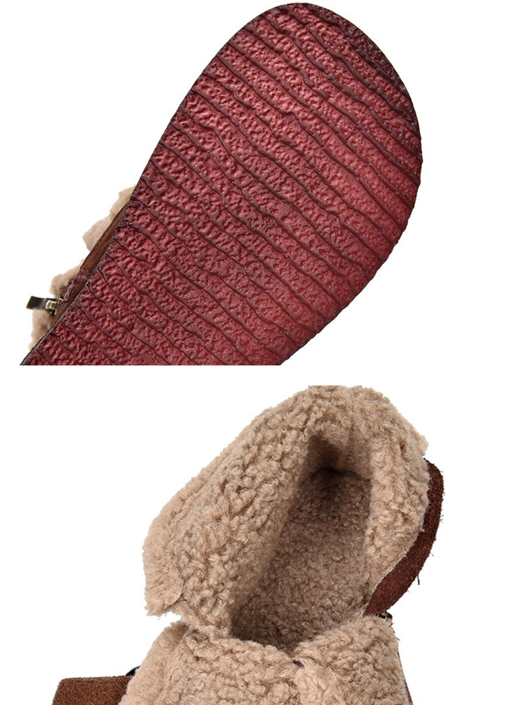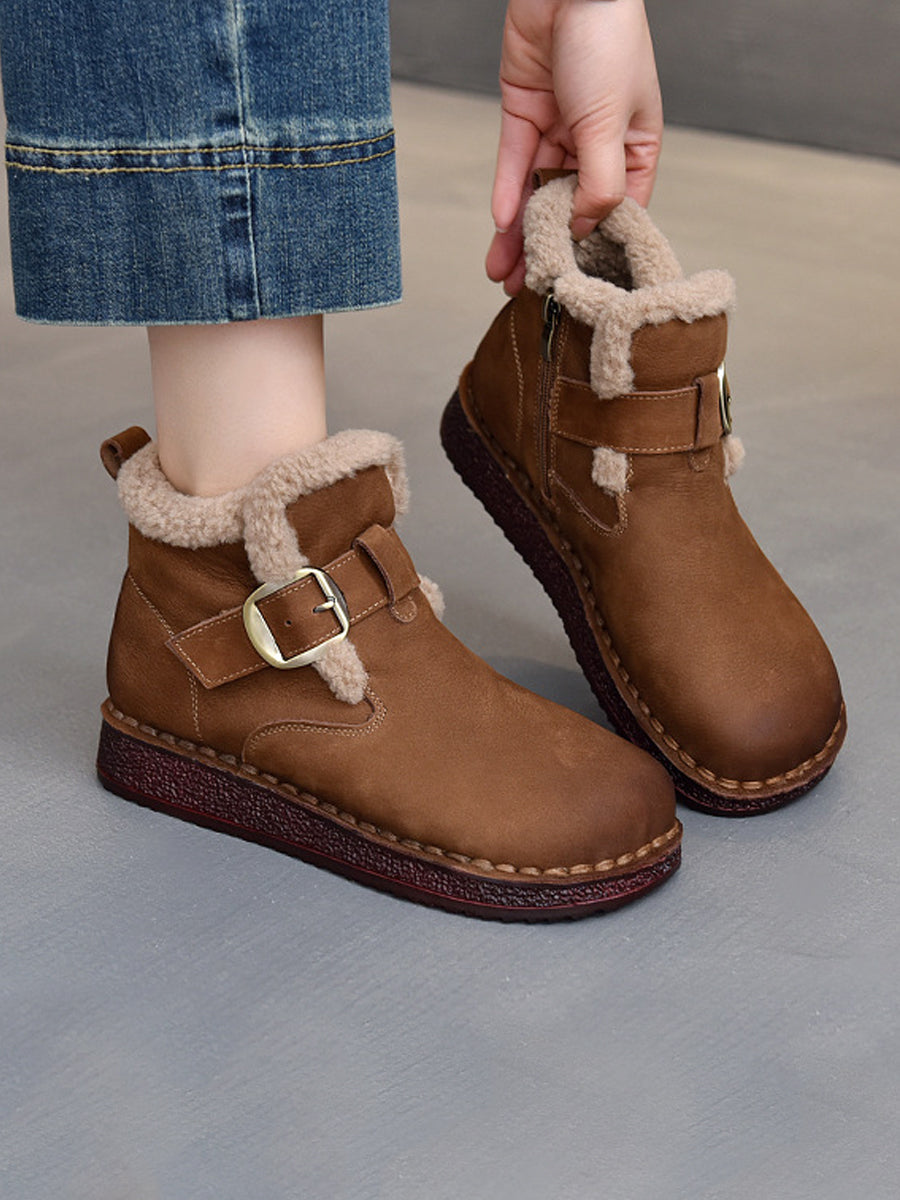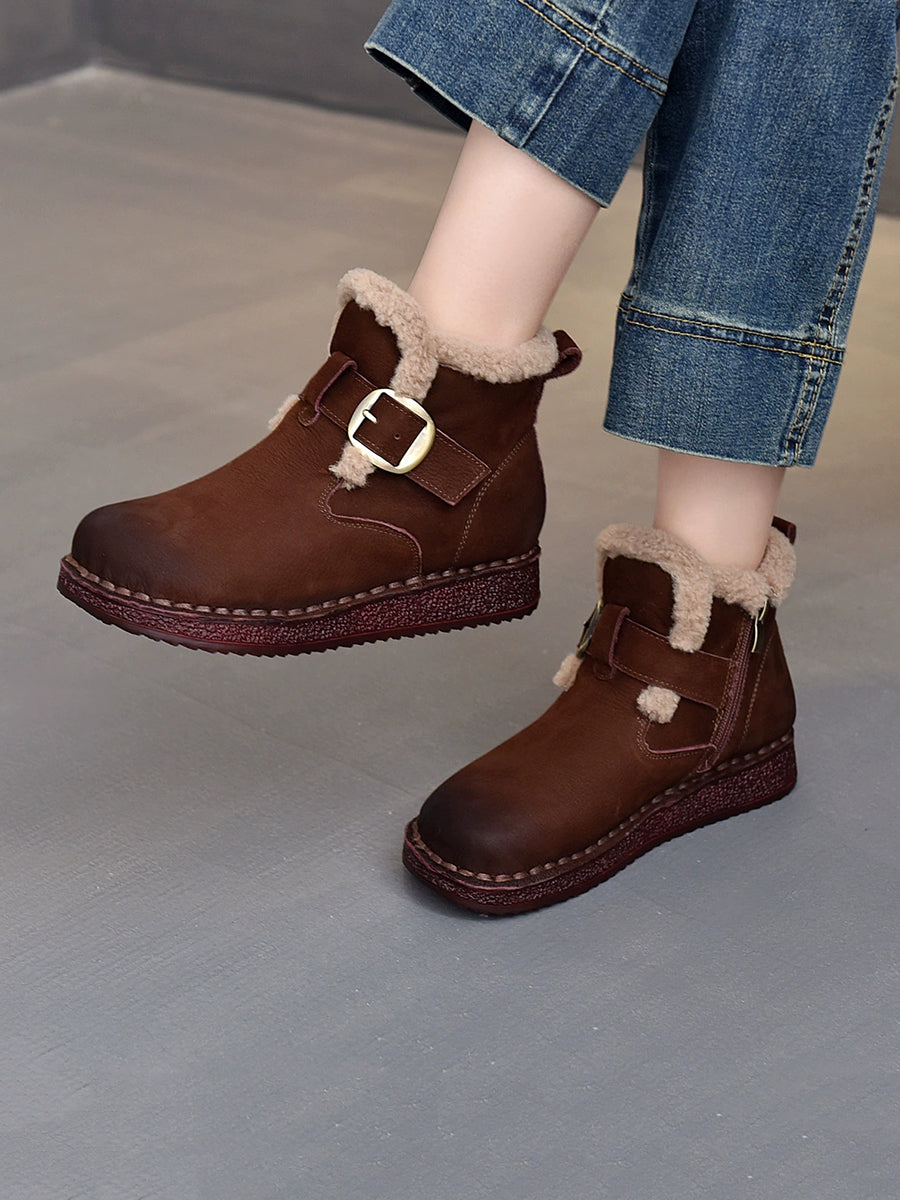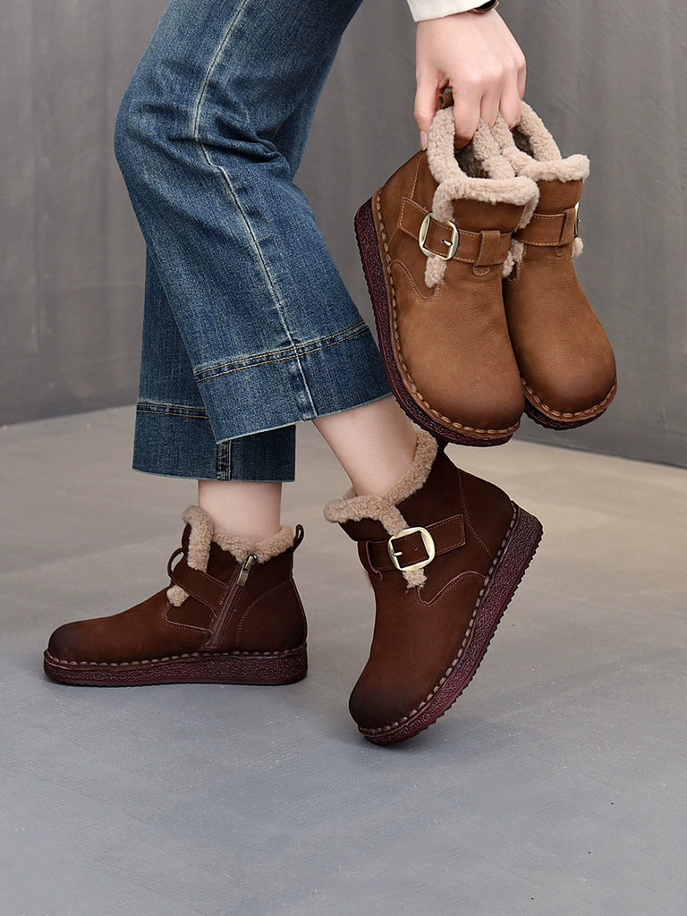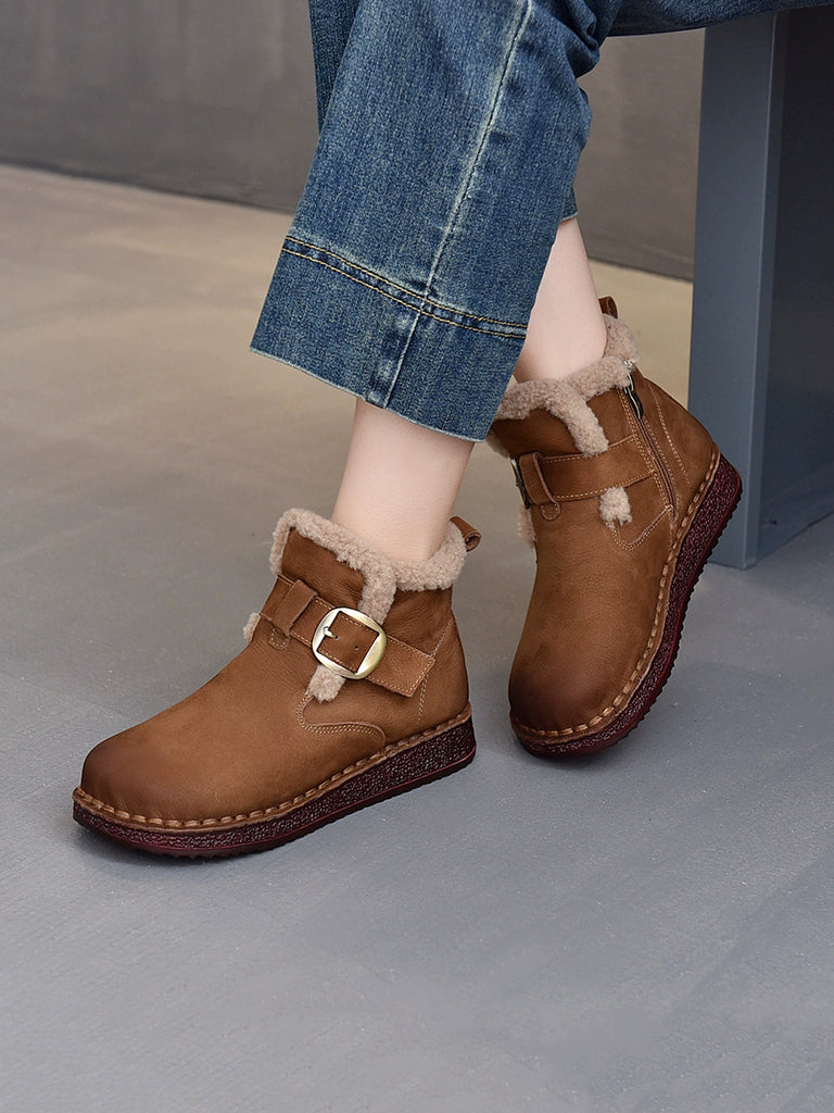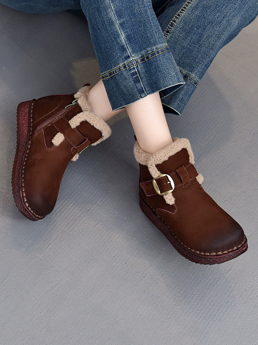 Bottines vintage pour femmes en cuir véritable doublées de polaire