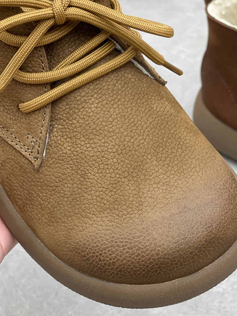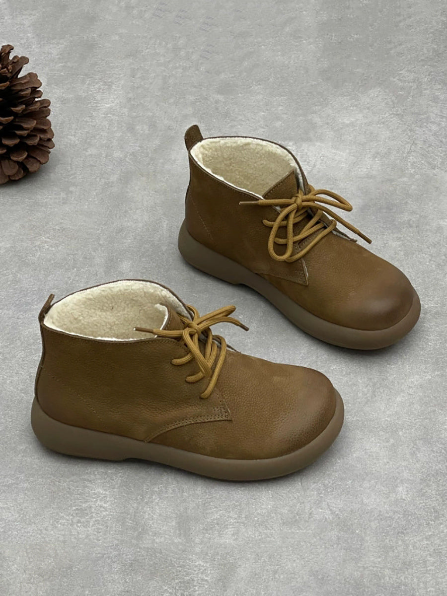 Bottines vintage pour femmes en cuir véritable doublées de polaire