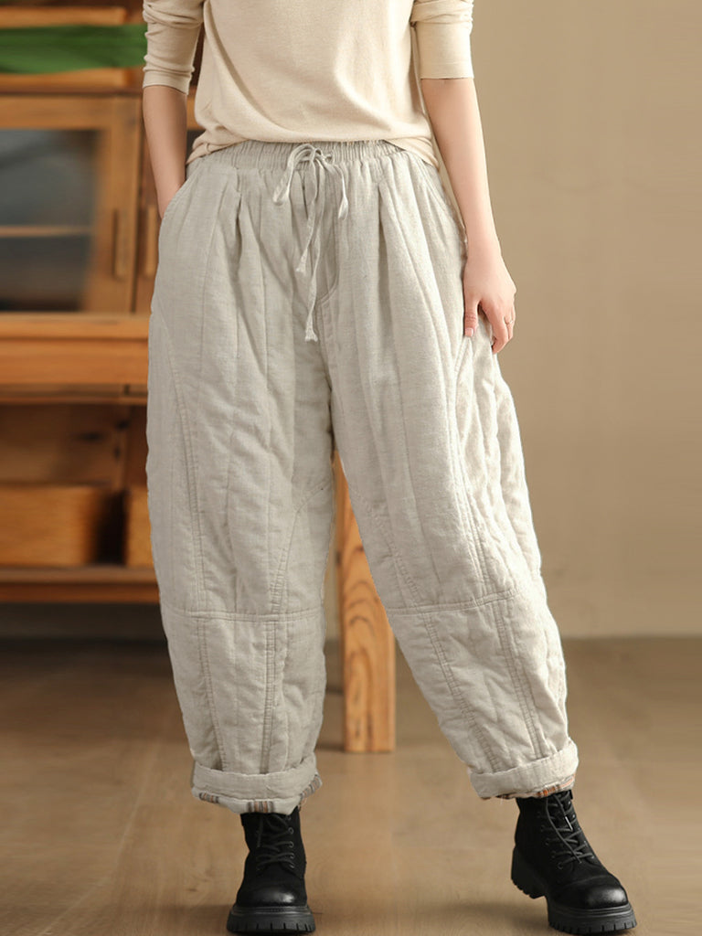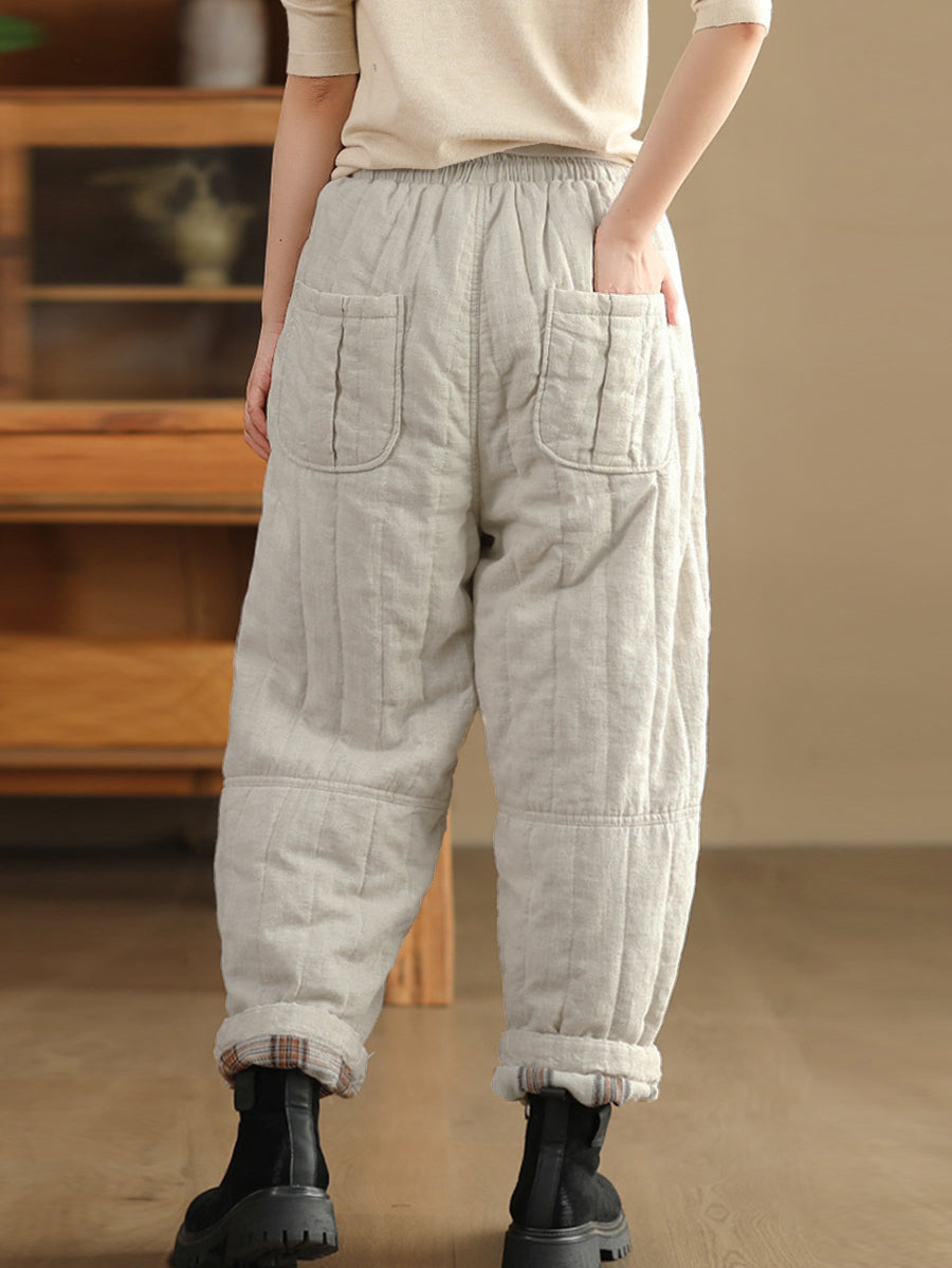 Pantalon sarouel rembourré 100 % lin pour femme, couleur unie, automne