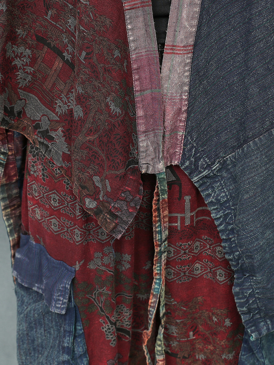 Combinaisons amples en coton à col en V et patchwork ethnique pour femmes, automne