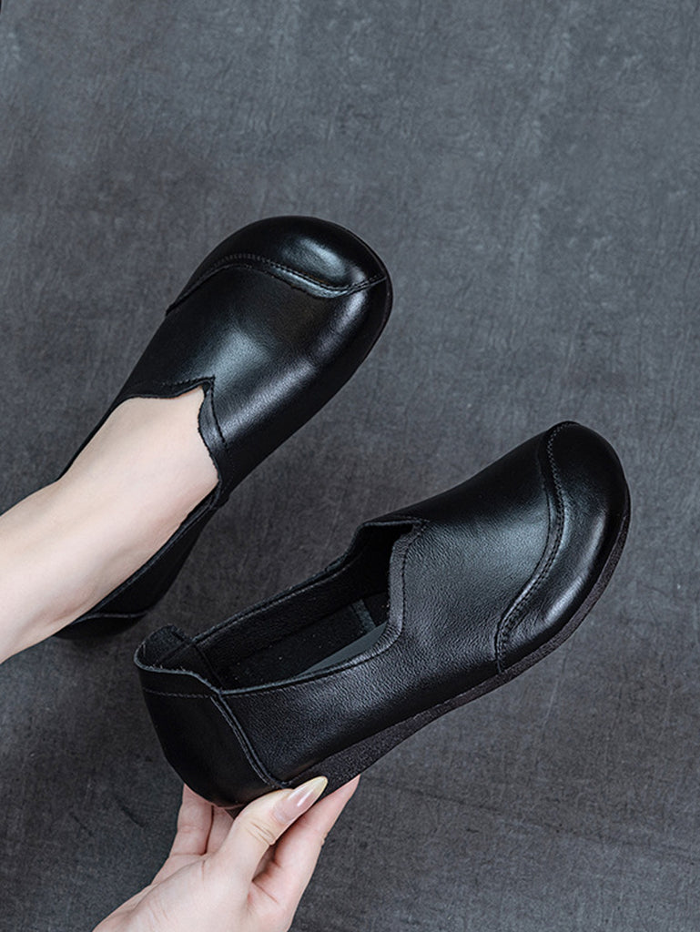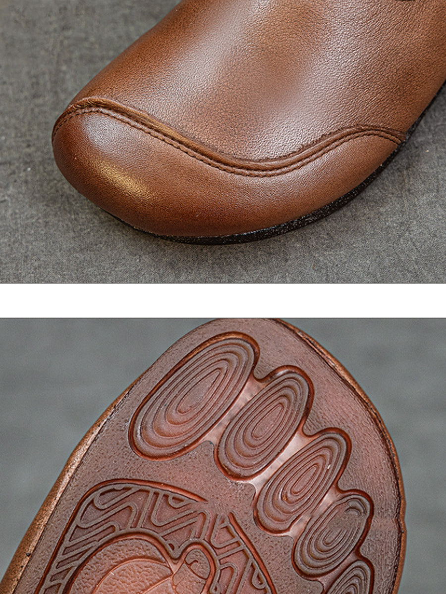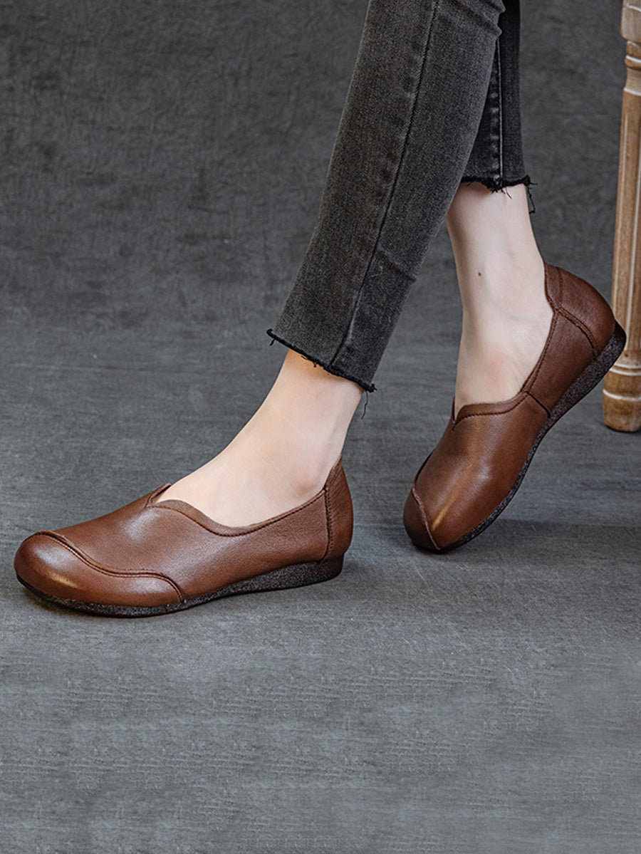 Chaussures plates vintage en cuir véritable pour femme, collection automne