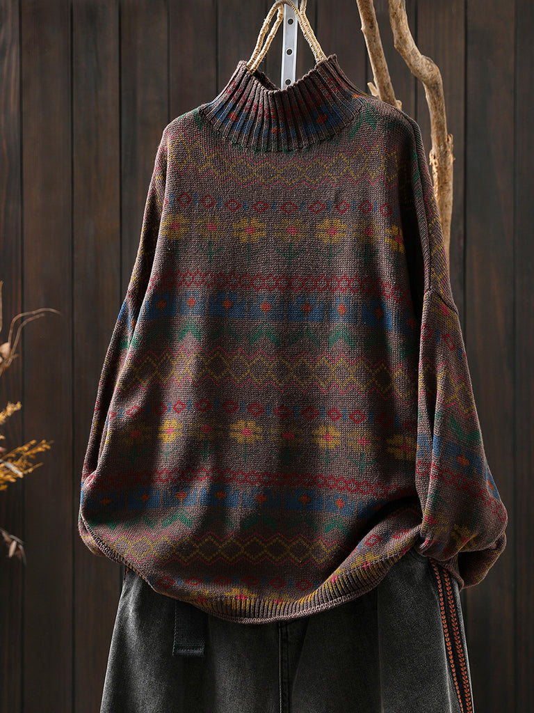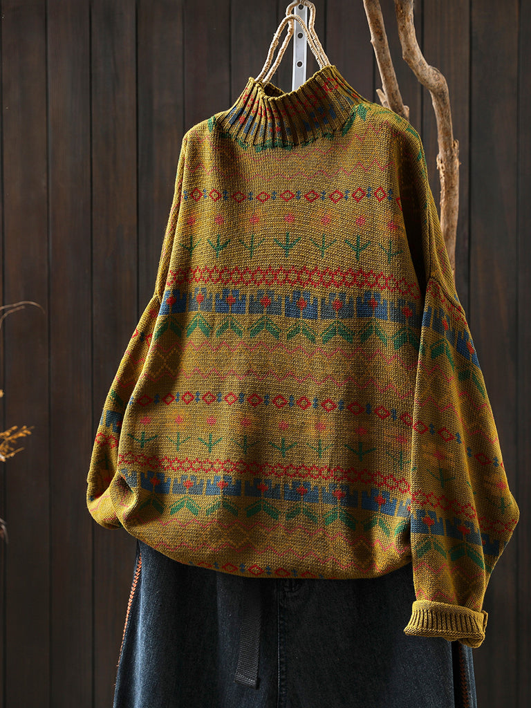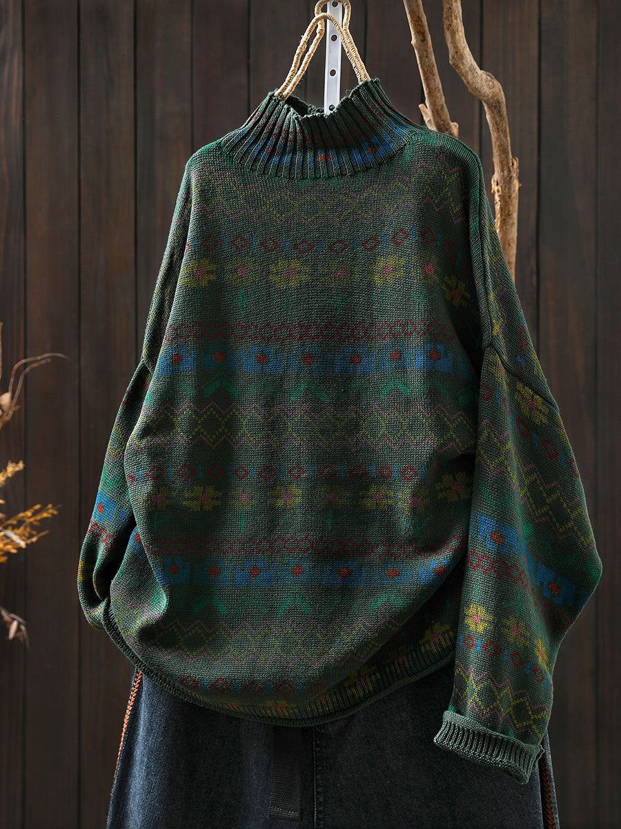 Ce pull automne-hiver allie confort et originalité grâce à son motif à rayures façon cerf et son col montant structuré. Confectionné dans un mélange soigneusement étudié de viscose, d'acrylique et de polyester, il offre chaleur et respirabilité pour les saisons plus fraîches. Ses manches longues classiques assurent une protection optimale, tandis que son design artistique rehausse toutes vos tenues du quotidien. Une pièce idéale à superposer, qui se prête aussi bien à un look décontracté qu'à une tenue plus sophistiquée.