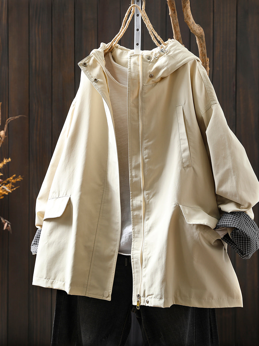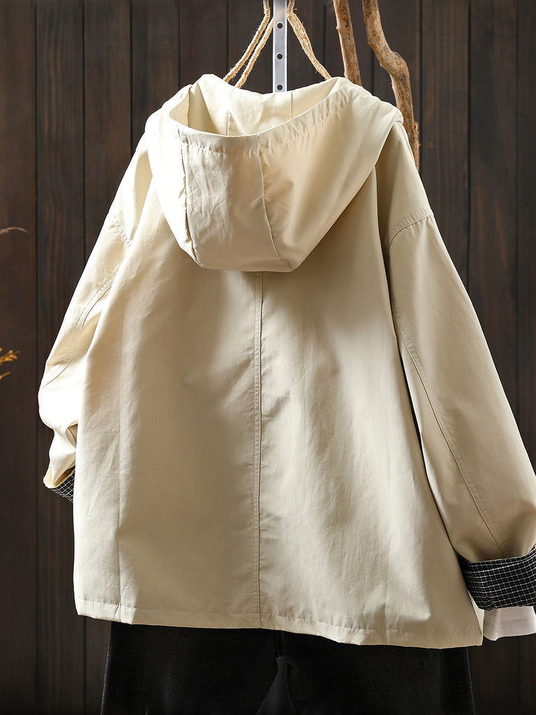 Veste coupe-vent à capuche décontractée pour femme, couleur unie, automne