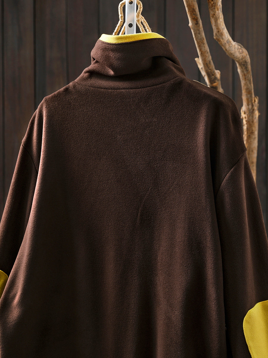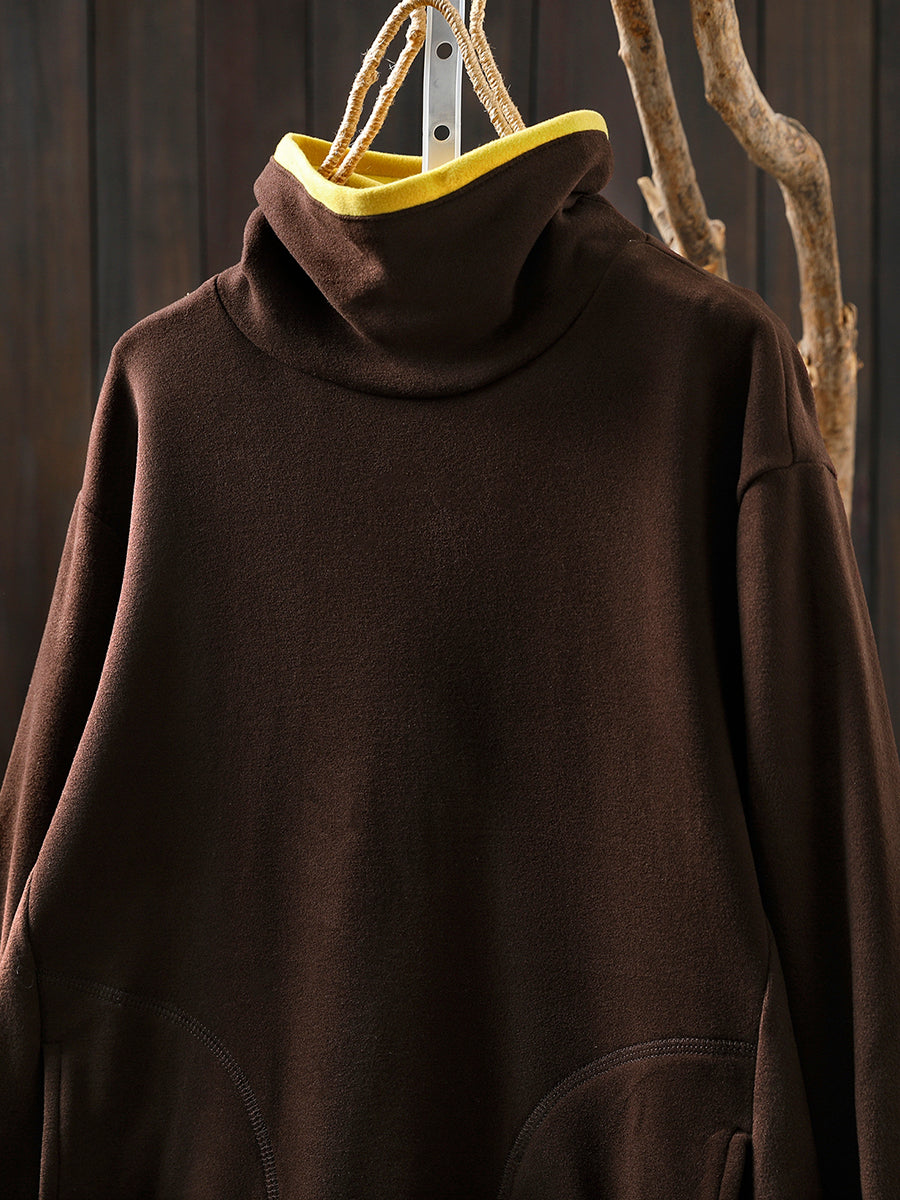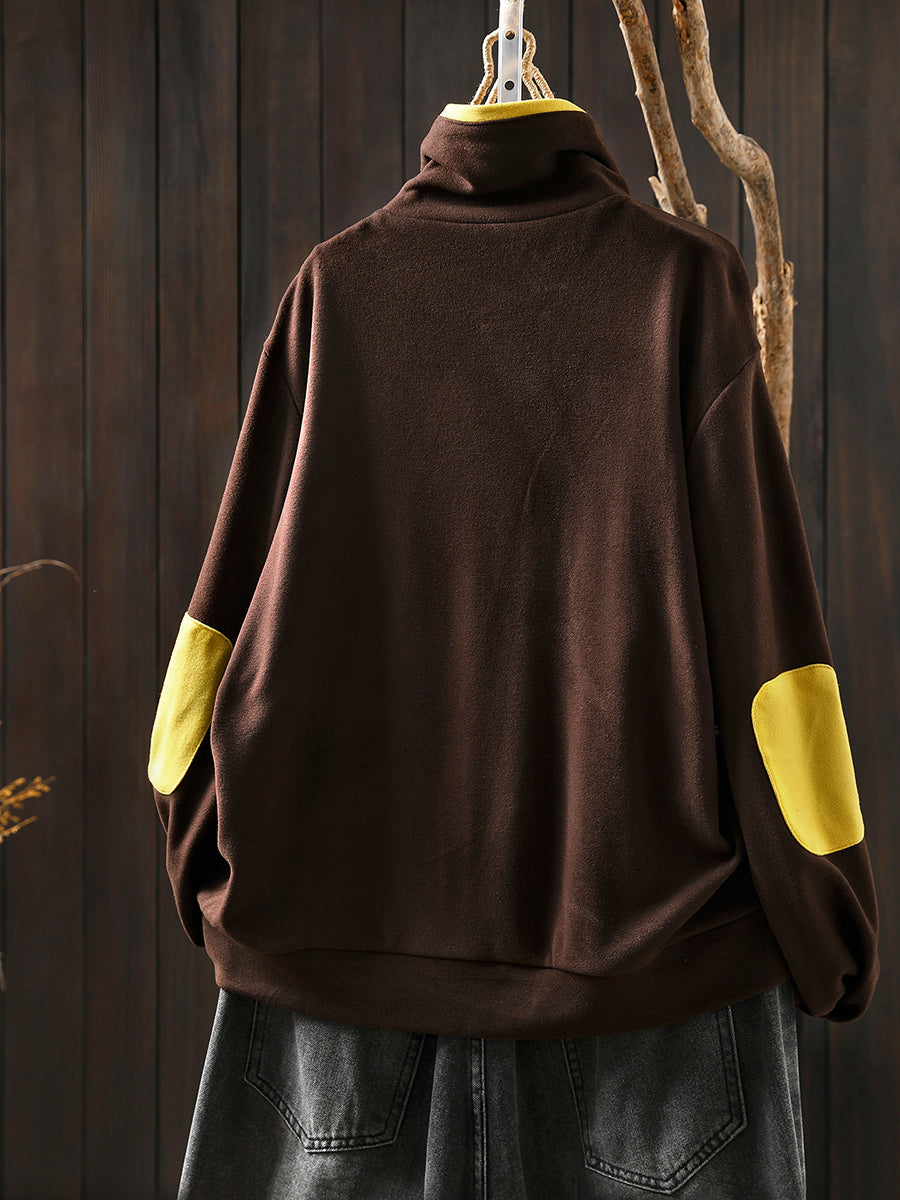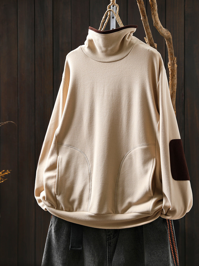 Blouse en coton à col roulé colorblock pour femme, style automne décontracté.