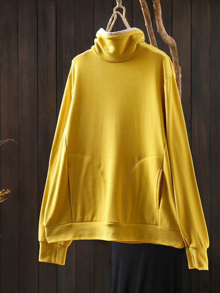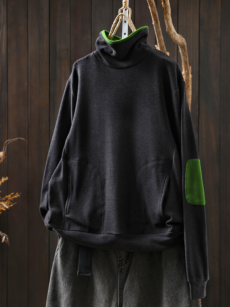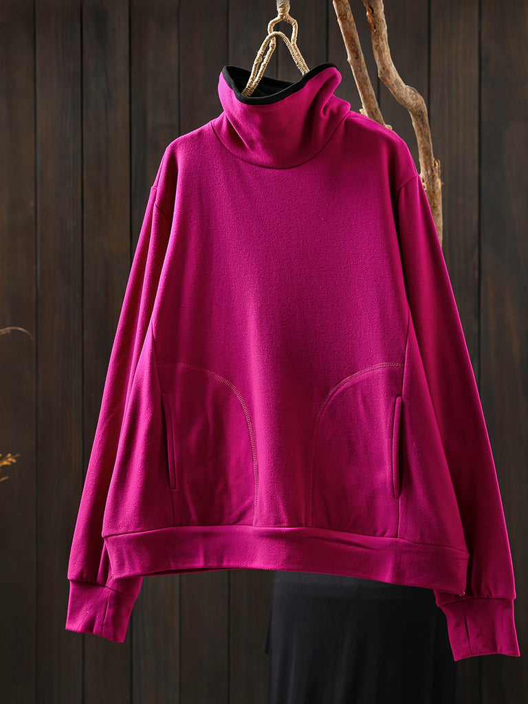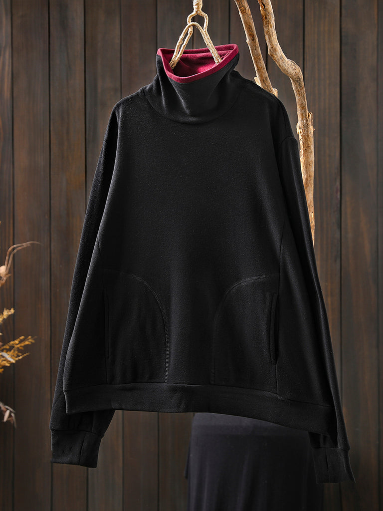 Blouse en coton à col roulé colorblock pour femme, style automne décontracté.