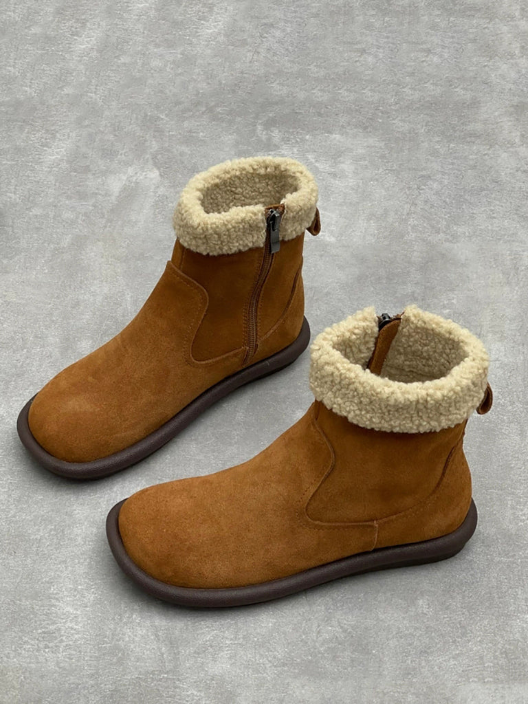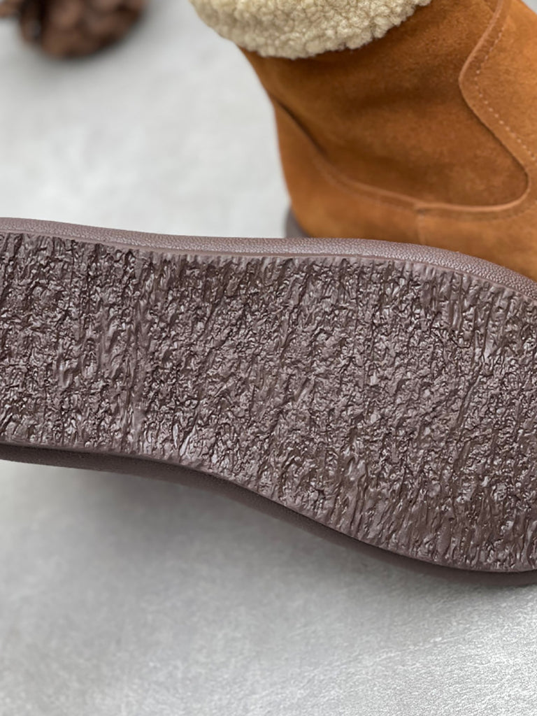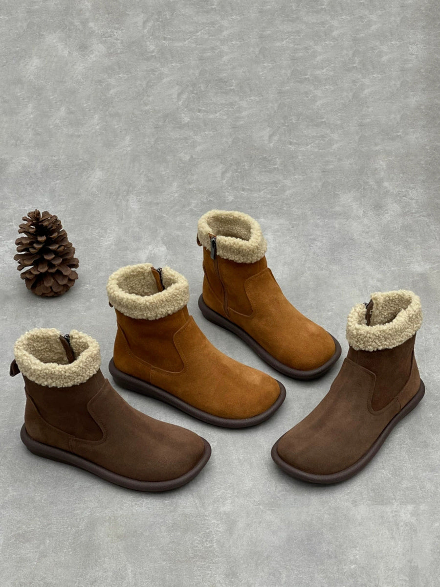 Bottes vintage pour femmes en cuir véritable doublées de polaire