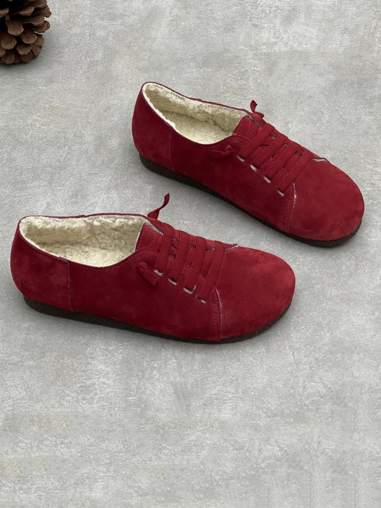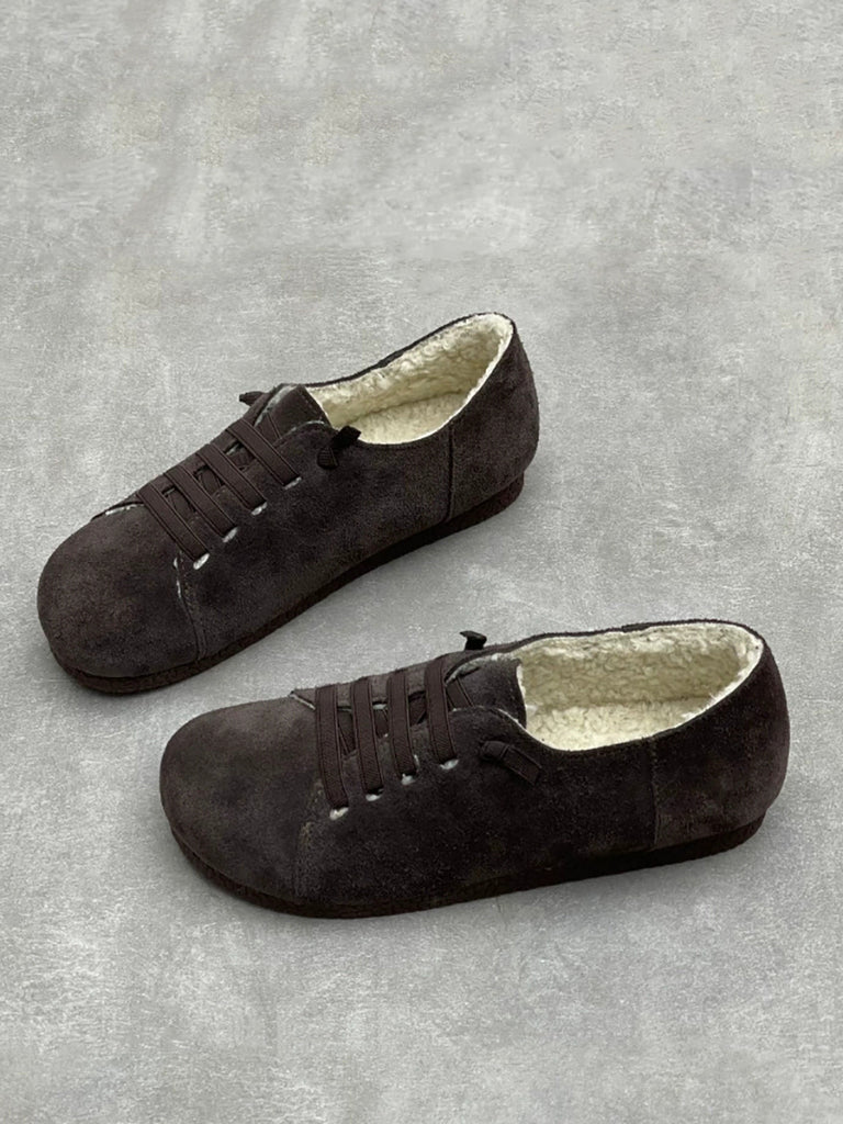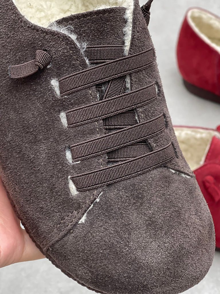 Chaussures vintage pour femmes en cuir véritable doublées de polaire