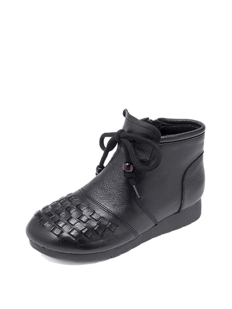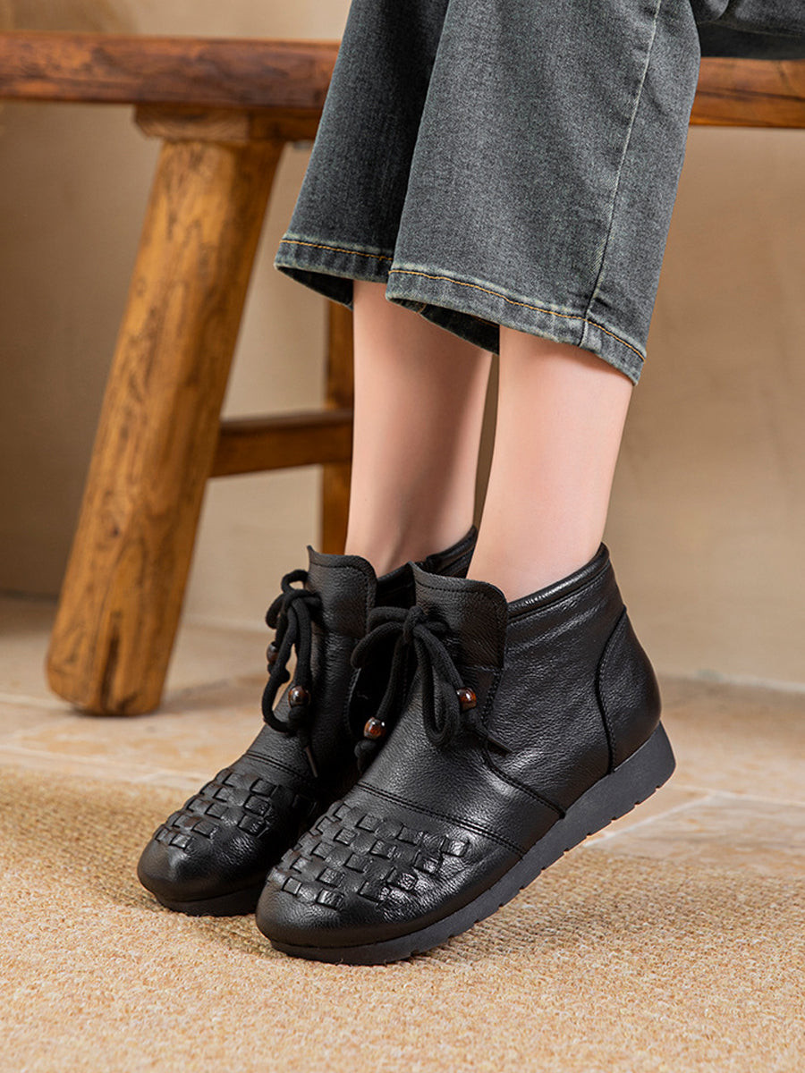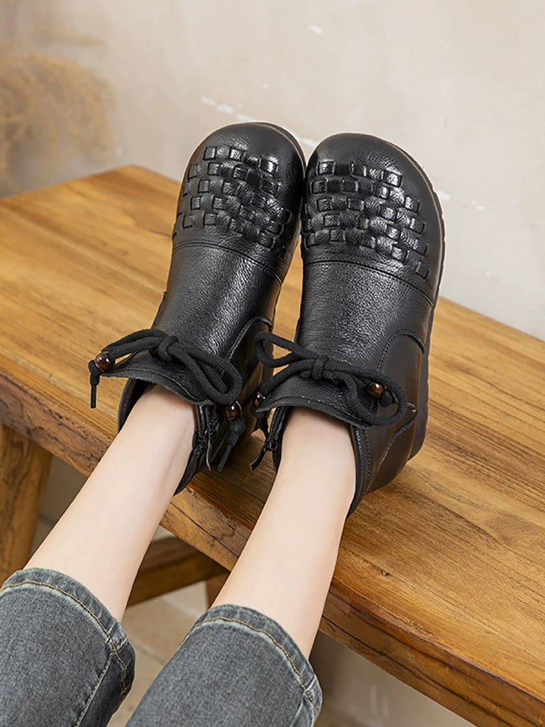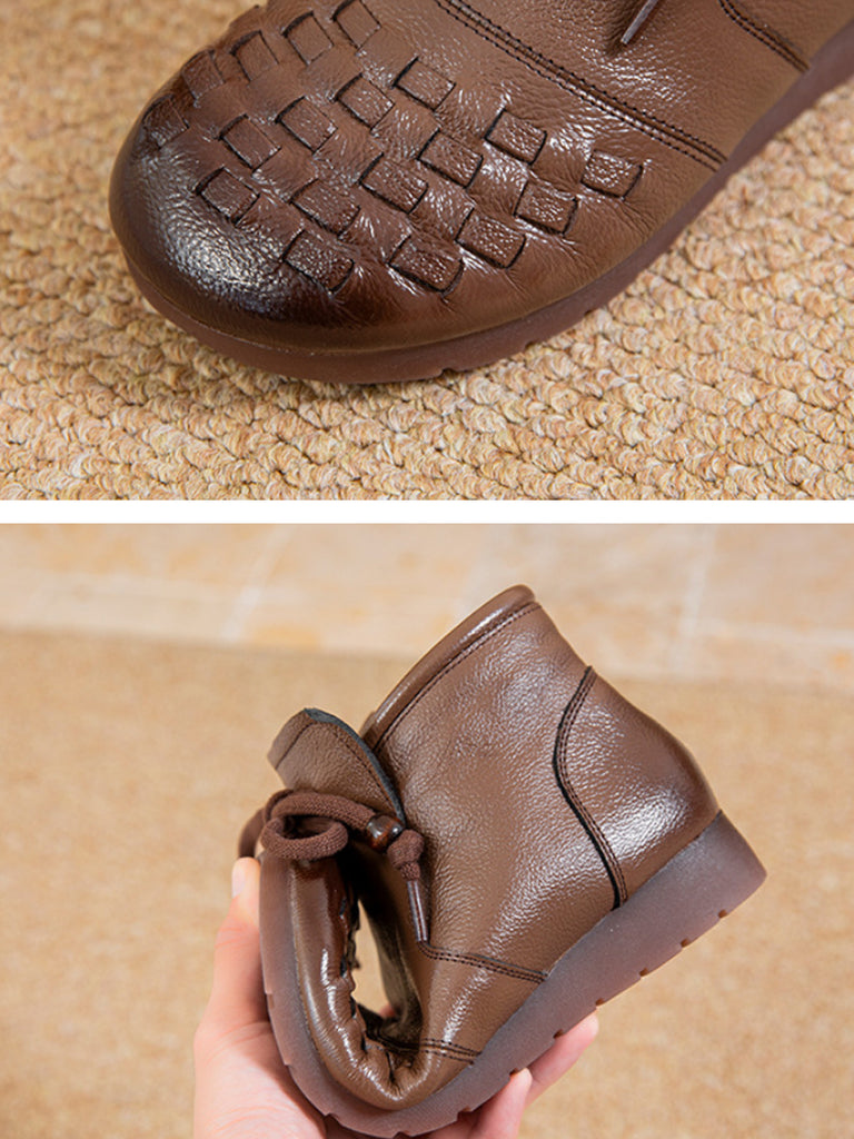 Bottines vintage pour femmes en cuir véritable à empiècements