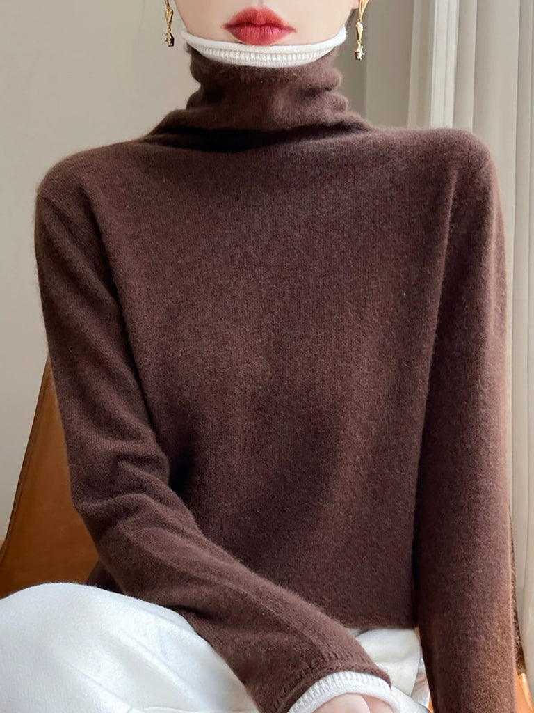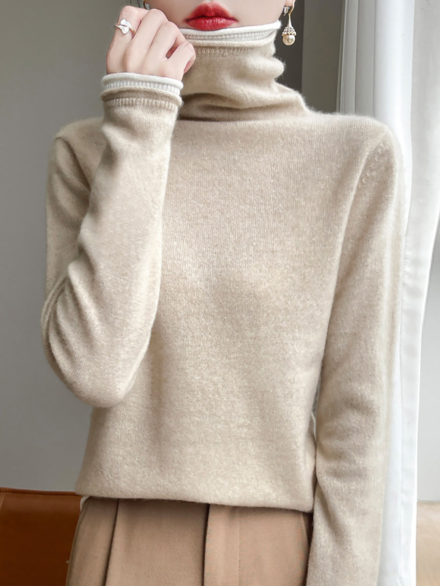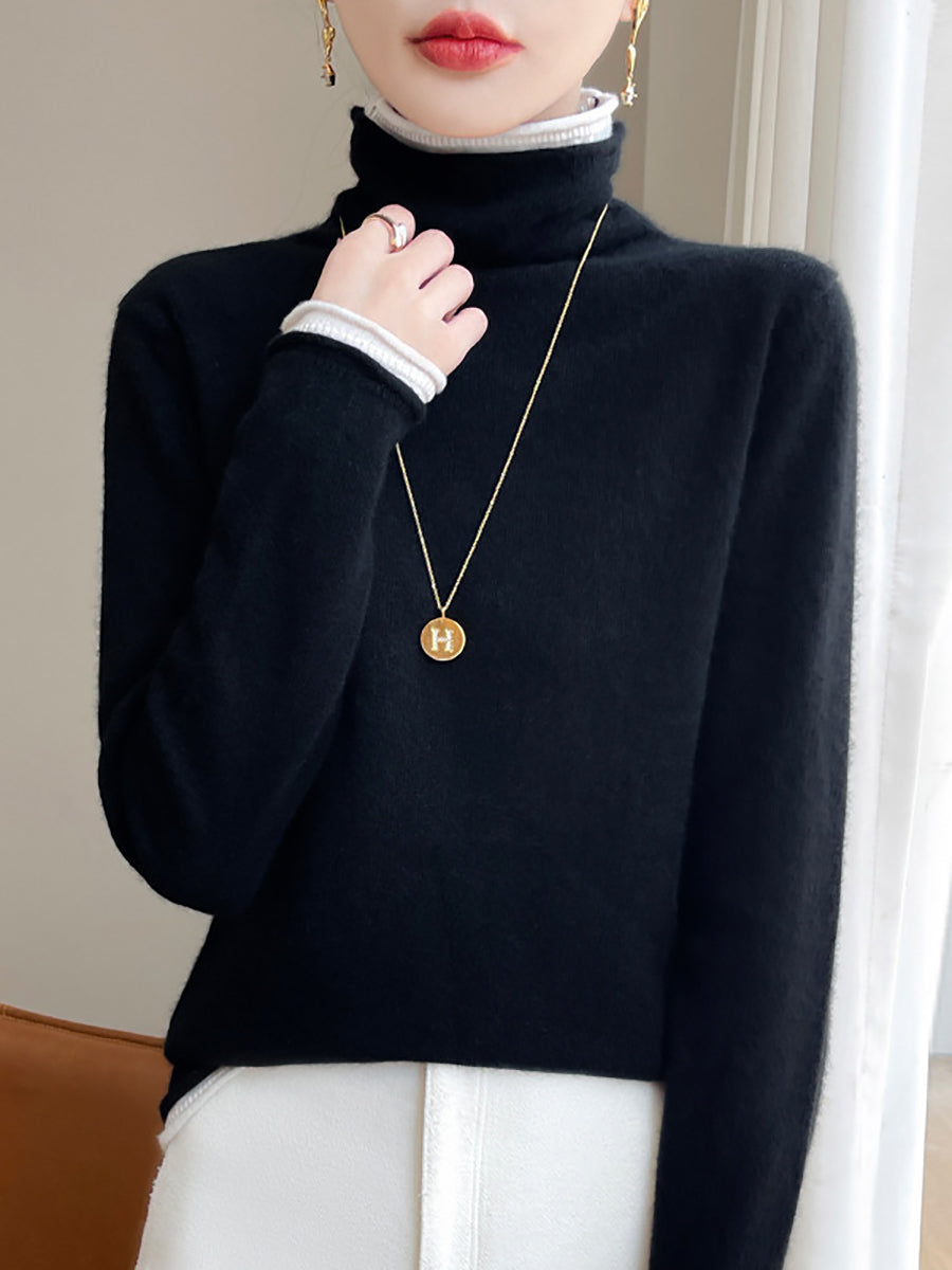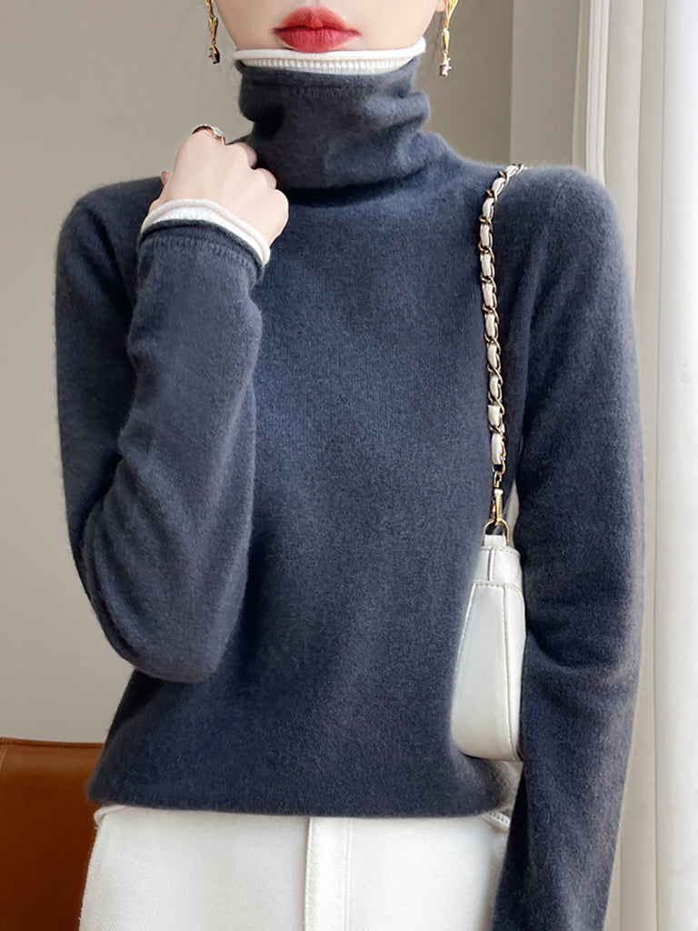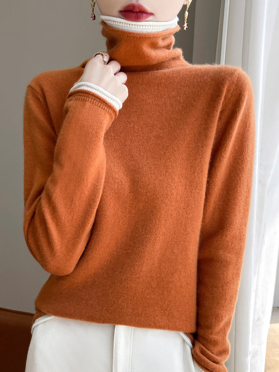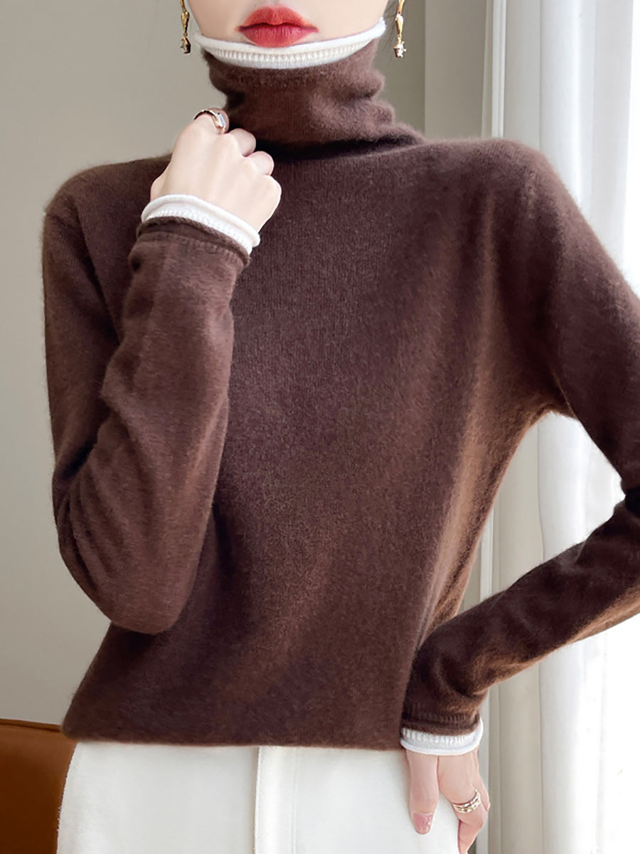 Pull à col roulé en maille colorblock pour femme, style hiver décontracté