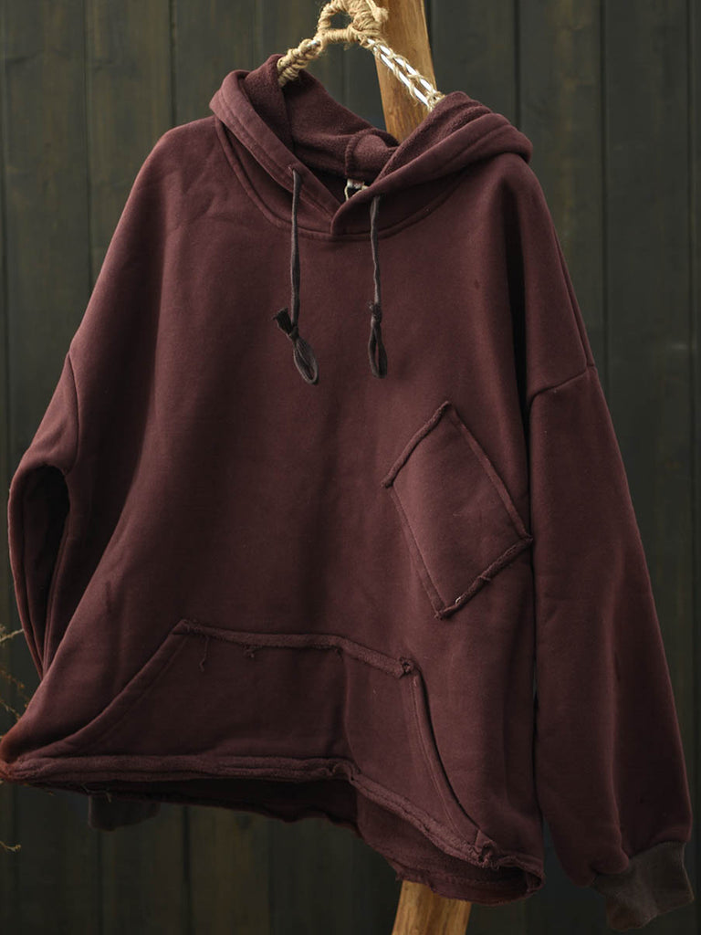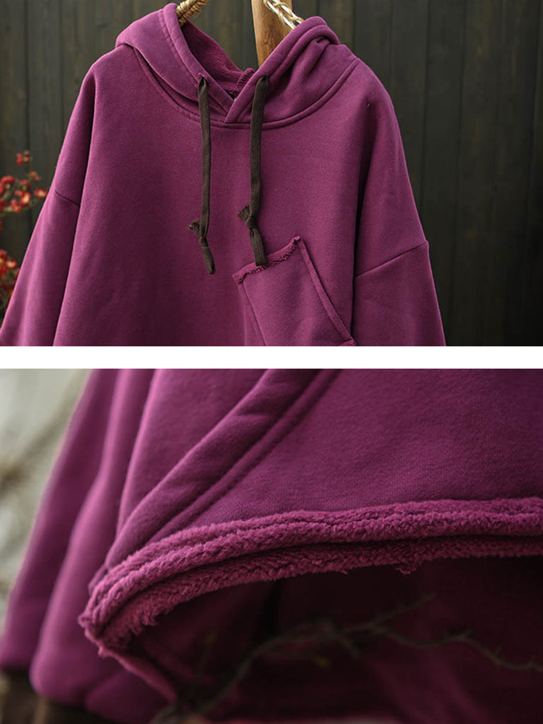 Sweat à capuche d'hiver décontracté en polaire de couleur unie pour femme