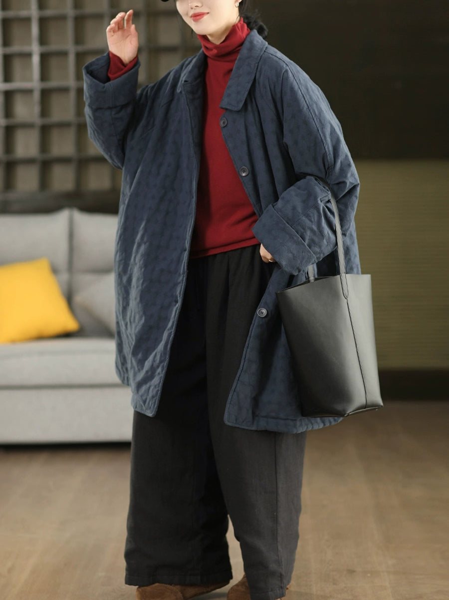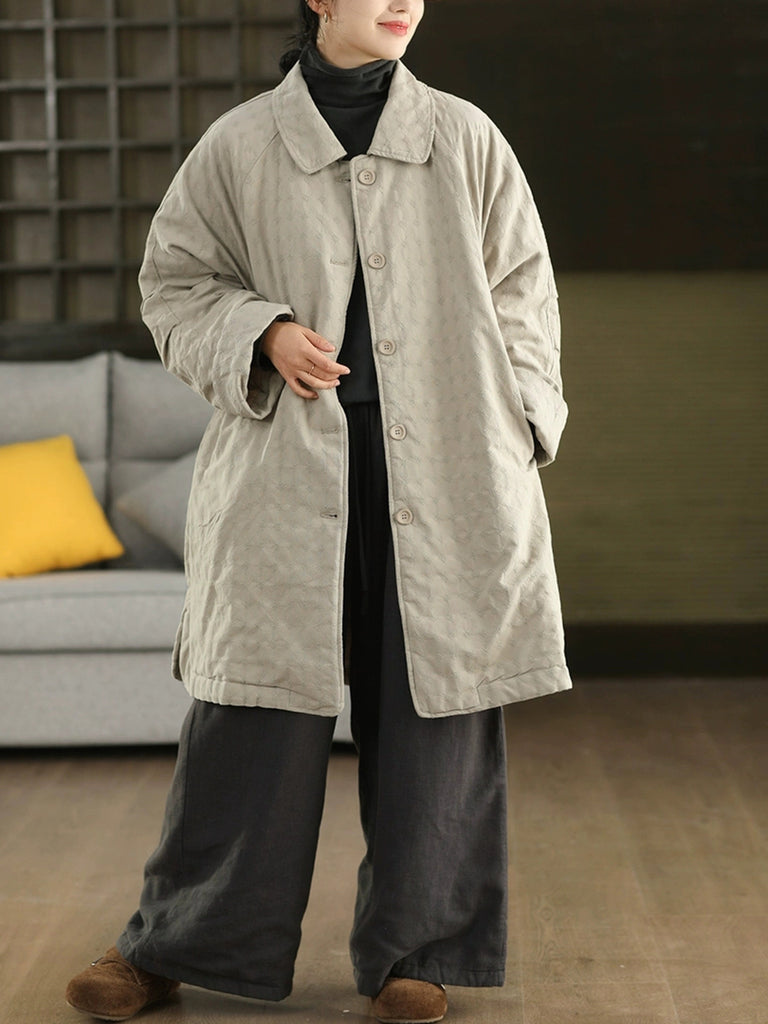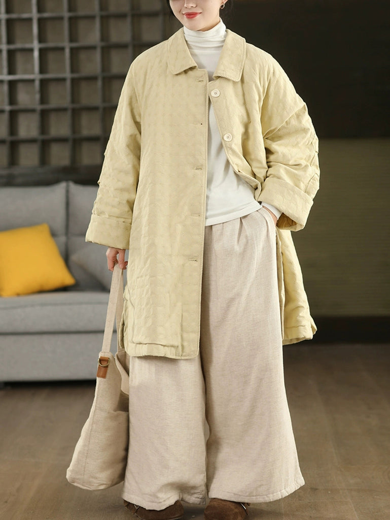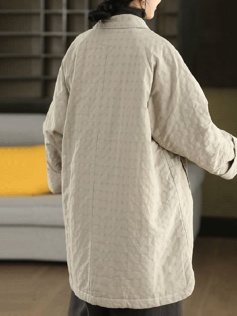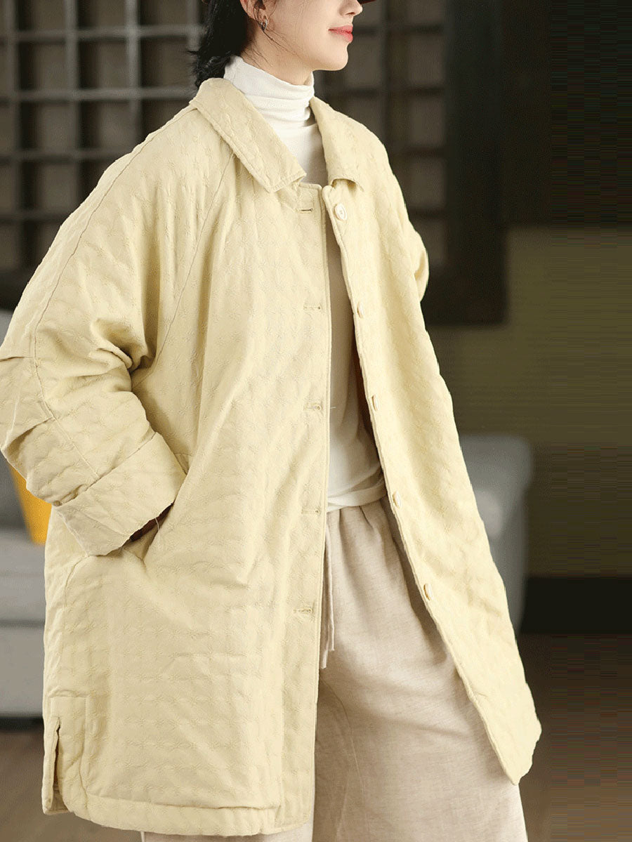 Manteau d'hiver rétro pour femme, couleur unie, col rabattu