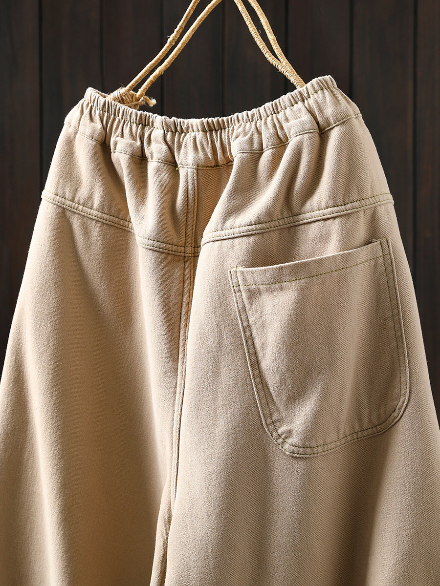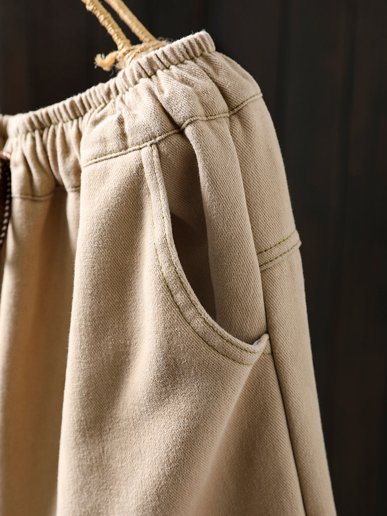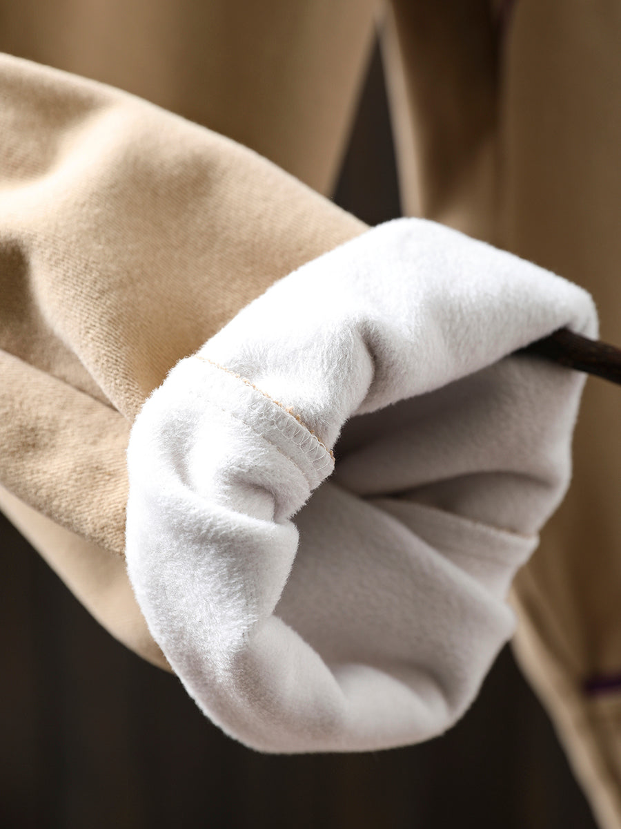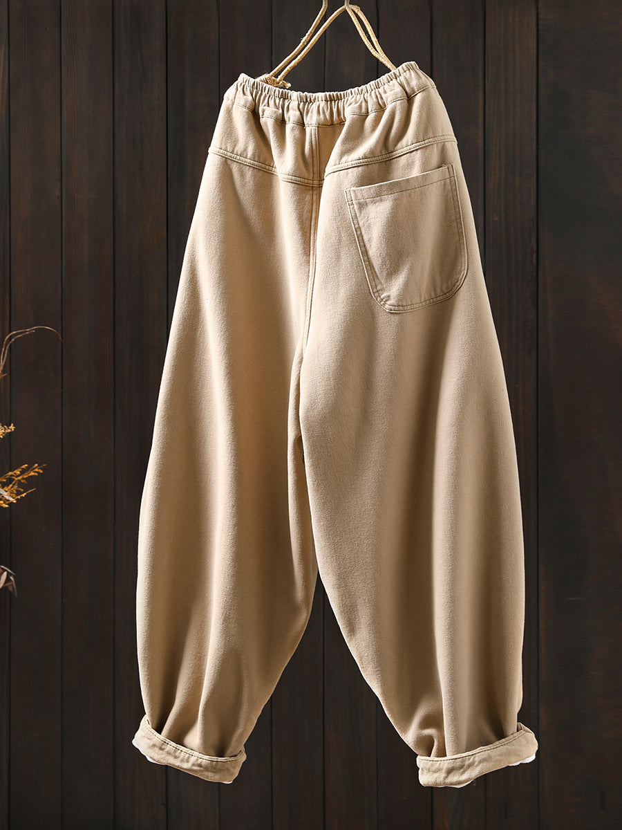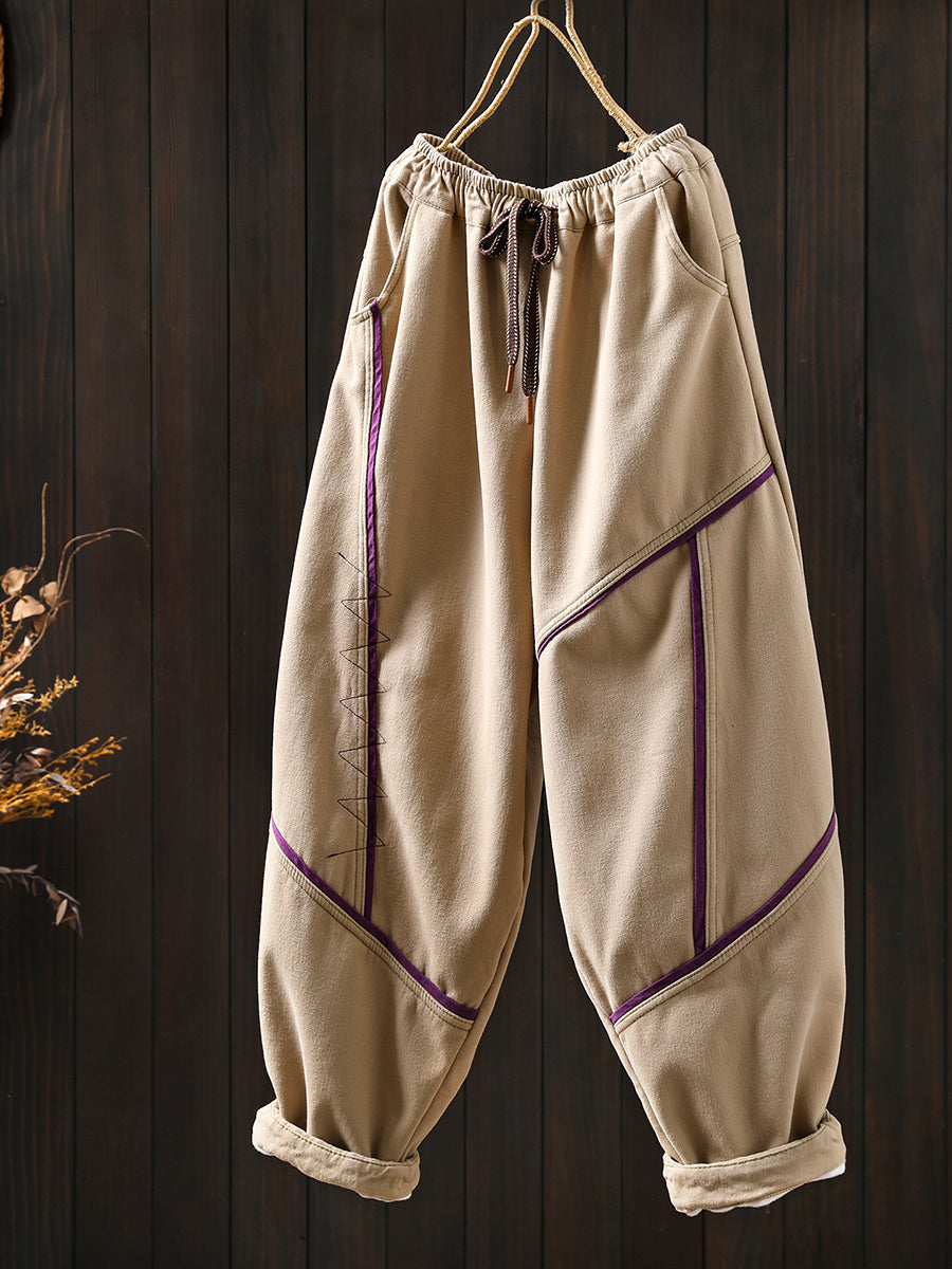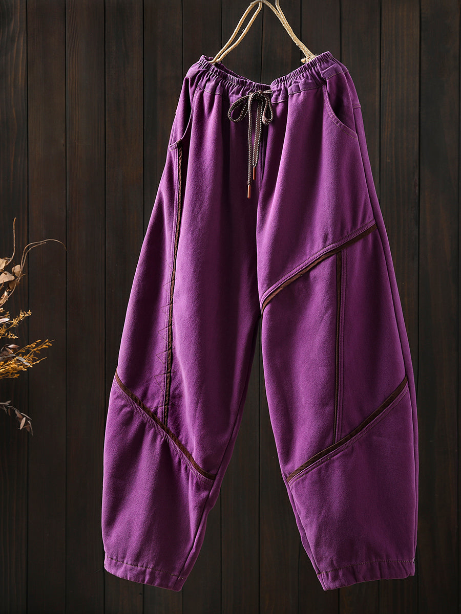 Pantalon harem vintage d'hiver pour femme, en coton doublé polaire et patchwork.