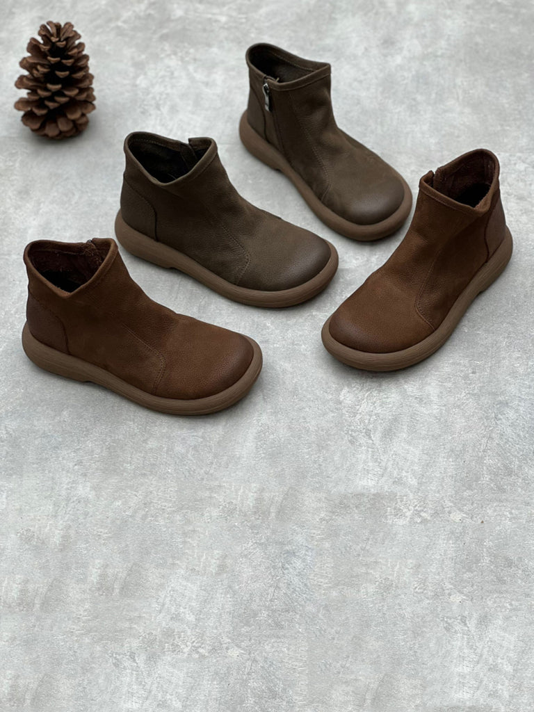 Bottes plates à fermeture éclair en cuir souple et solide pour femme